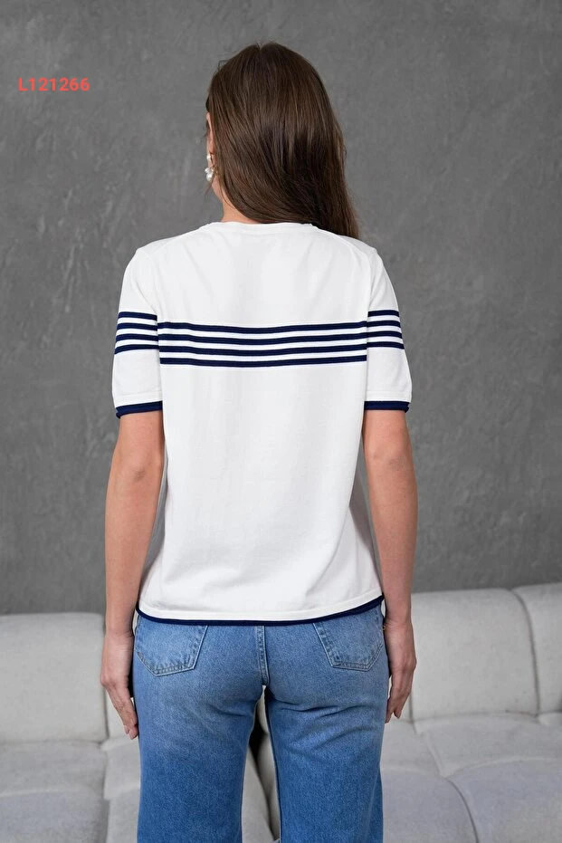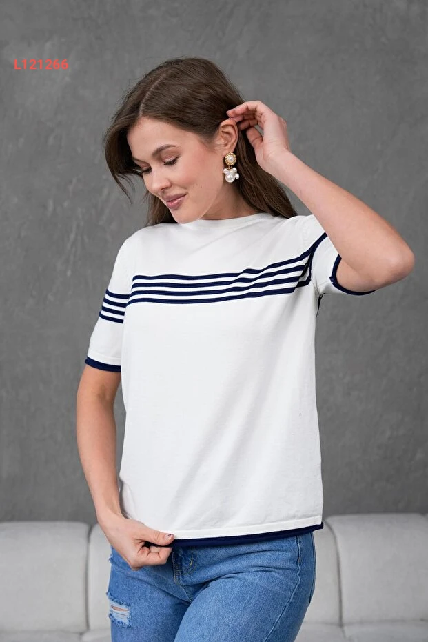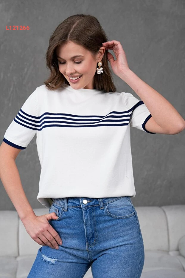 تألقي بأناقة لا مثيل لها مع بلوزة إيرماك بخطوطها الجذابة، مصنوعة من قماش مريح بكم قصير، تمنحك لمسة عصرية تدوم طويلاً. تصميمها باللونين الكريمي والبحري يضمن لكِ تنسيقاً سهلاً مع مختلف الإطلالات، مما يجعلها الخيار المثالي لكل يوم. اختاري الأناقة والبساطة في قطعة واحدة!