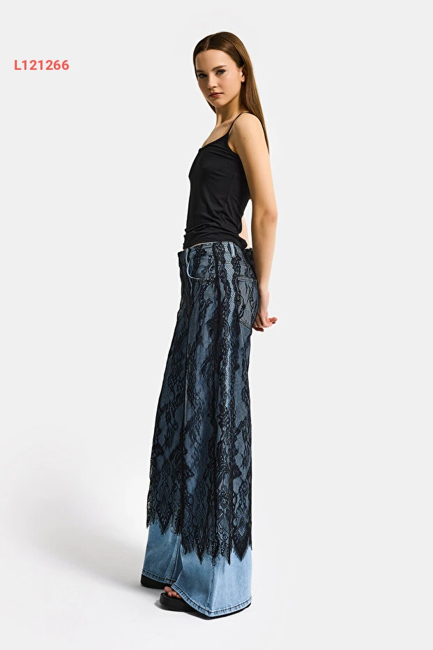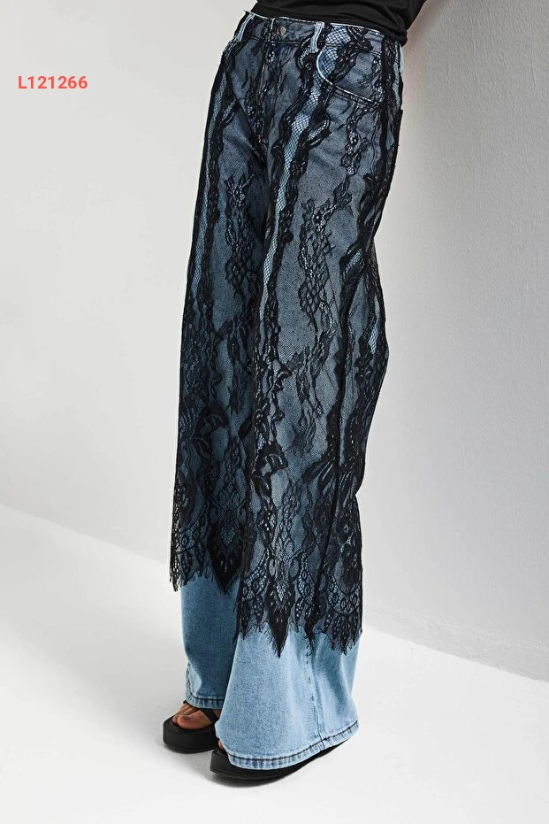 جينز دنيم بتصميم خاص برباط دانتيل للنساء - بتفاصيل جذابة