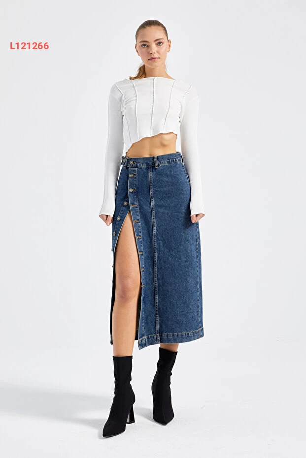 اكتشفي الأناقة البسيطة مع تنورة الدنيم الماكسي "Tilia"، حيث تأتي بتصميم رائع بأزرار أمامية ولون كوت مميز يناسب جميع الأوقات. مصنوعة من قماش مريح، تمنحك شعورًا دائمًا بالراحة وتضفي لمسة عصرية على إطلالتك. مثالية للتنسيق مع مختلف الأزياء، تعكس هذه التنورة أسلوبك الراقي والثقة بنفسك.