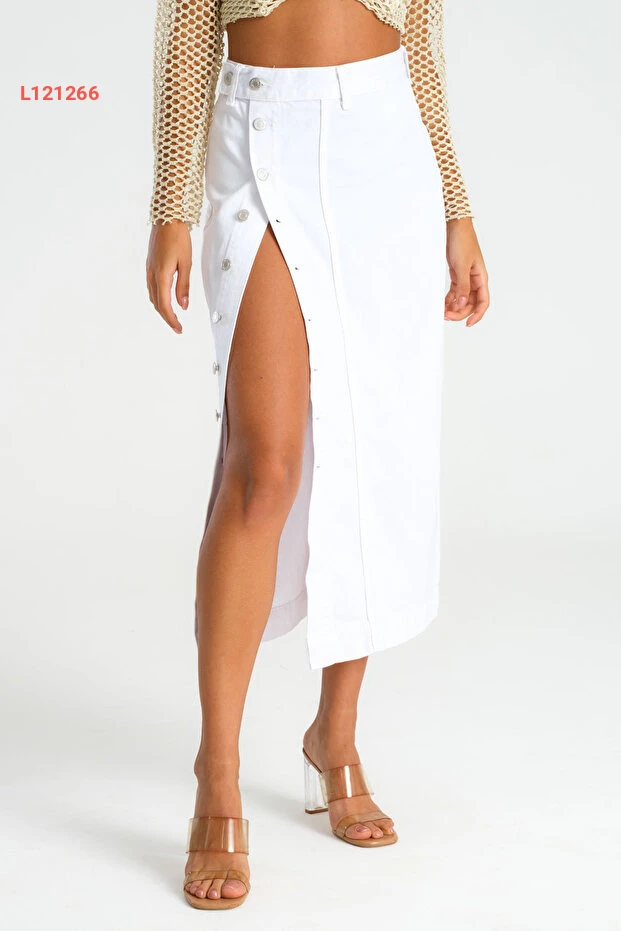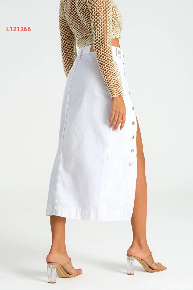 تنورة جينز ماكسي بيضاء مزودة بأزرار من الأمام للسيدات