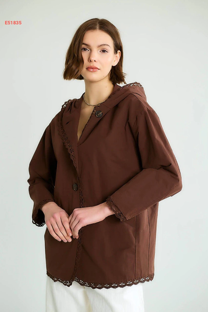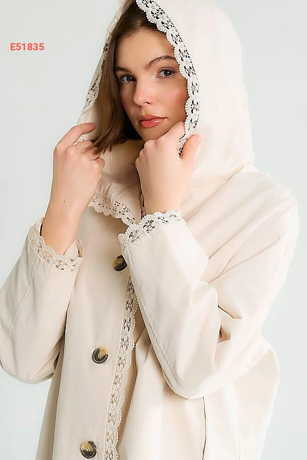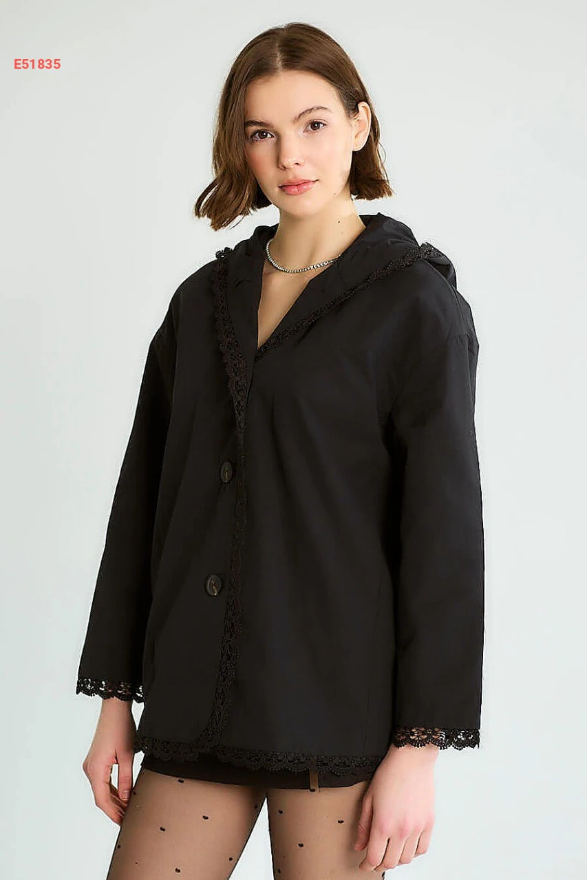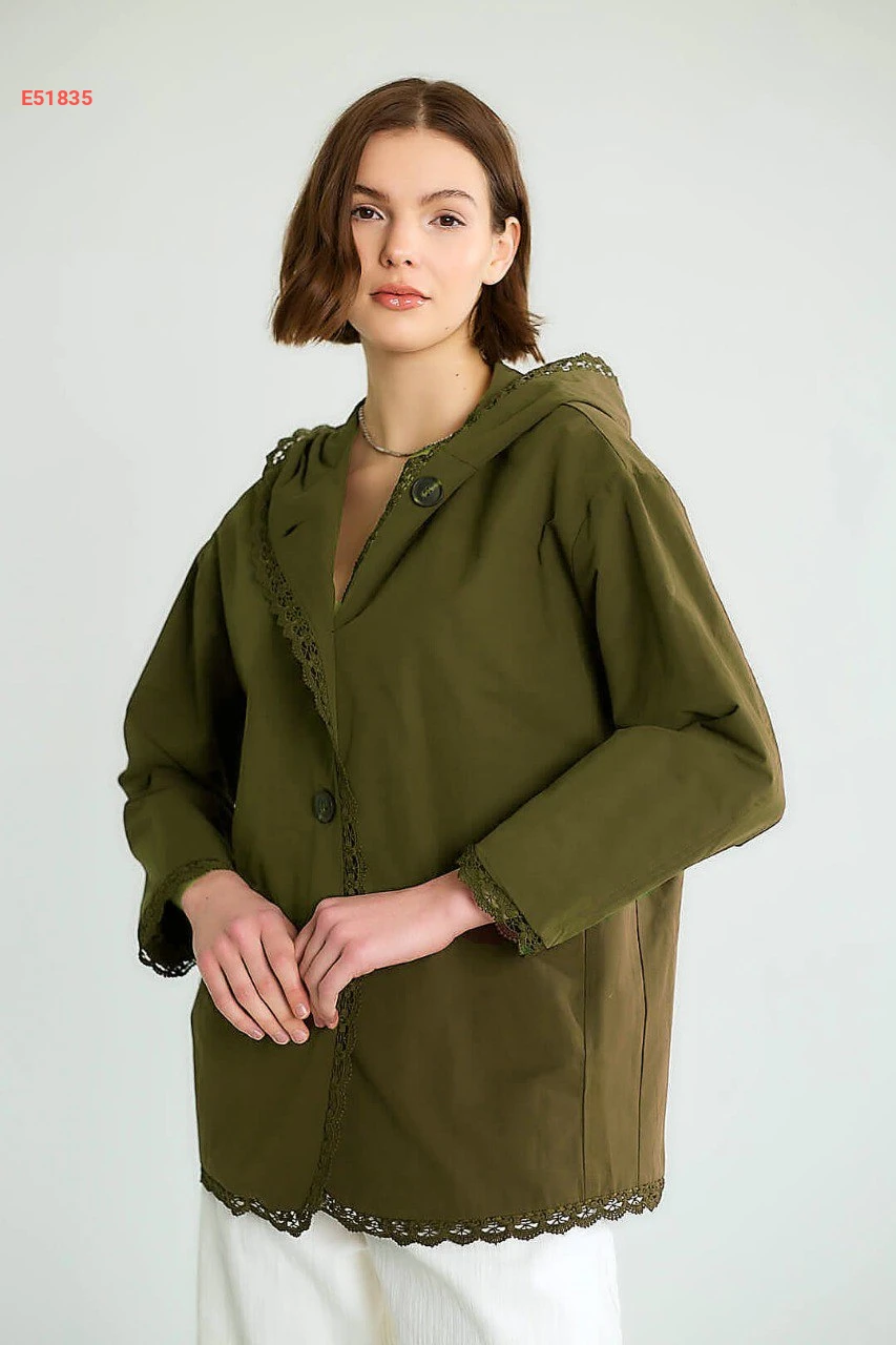 جاكيت بطاقية مع تفاصيل دانتيل
