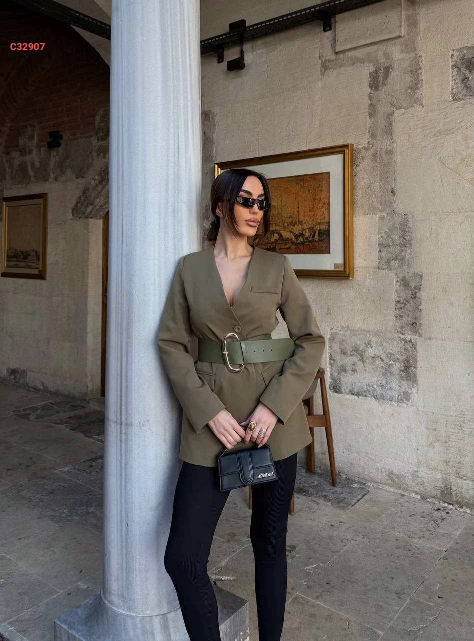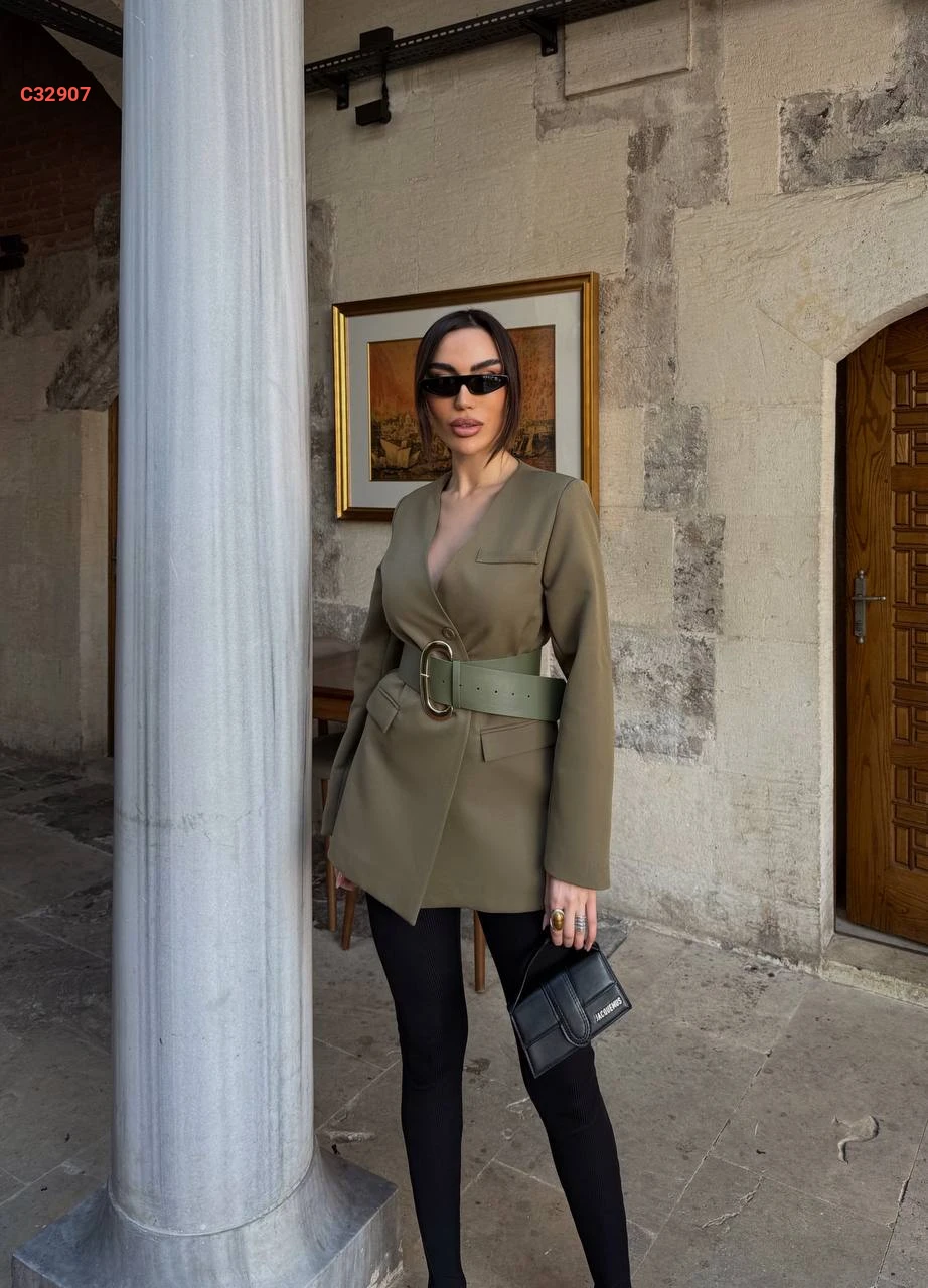 جاكيت مع حزام عريض