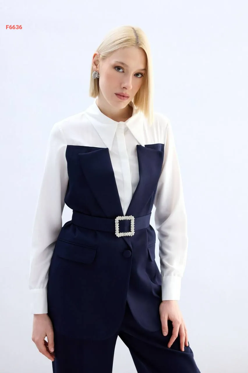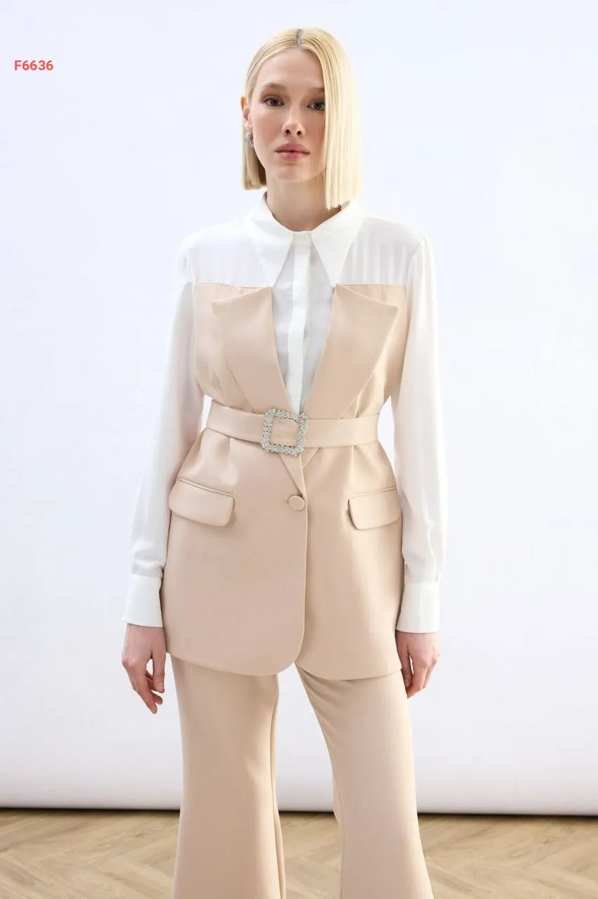 جاكيت بياقة وأكمام قميص مع حزام