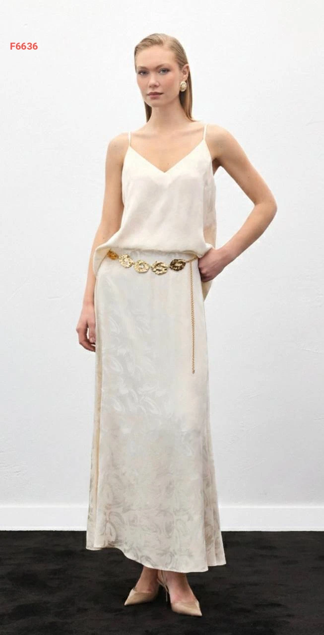 بلوزة جاكار بحمالات رفيعة