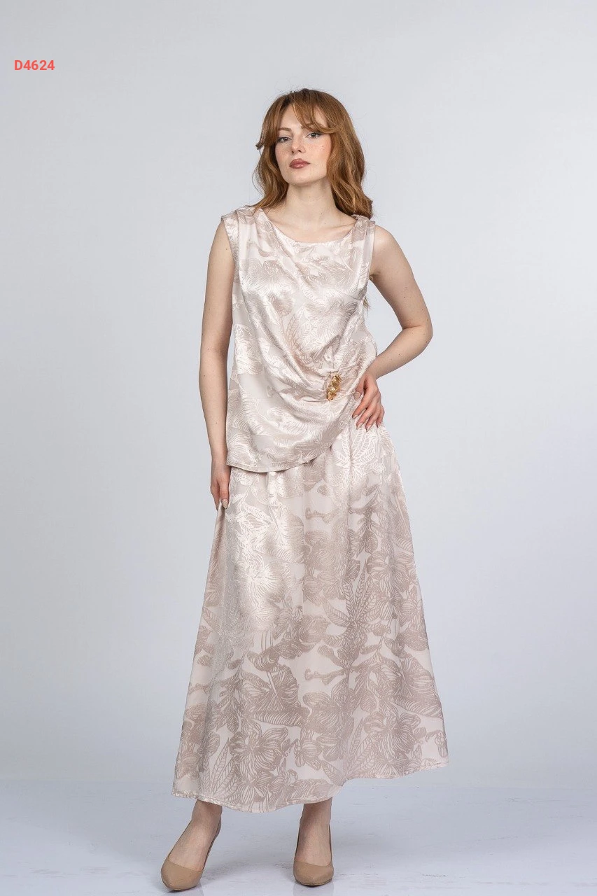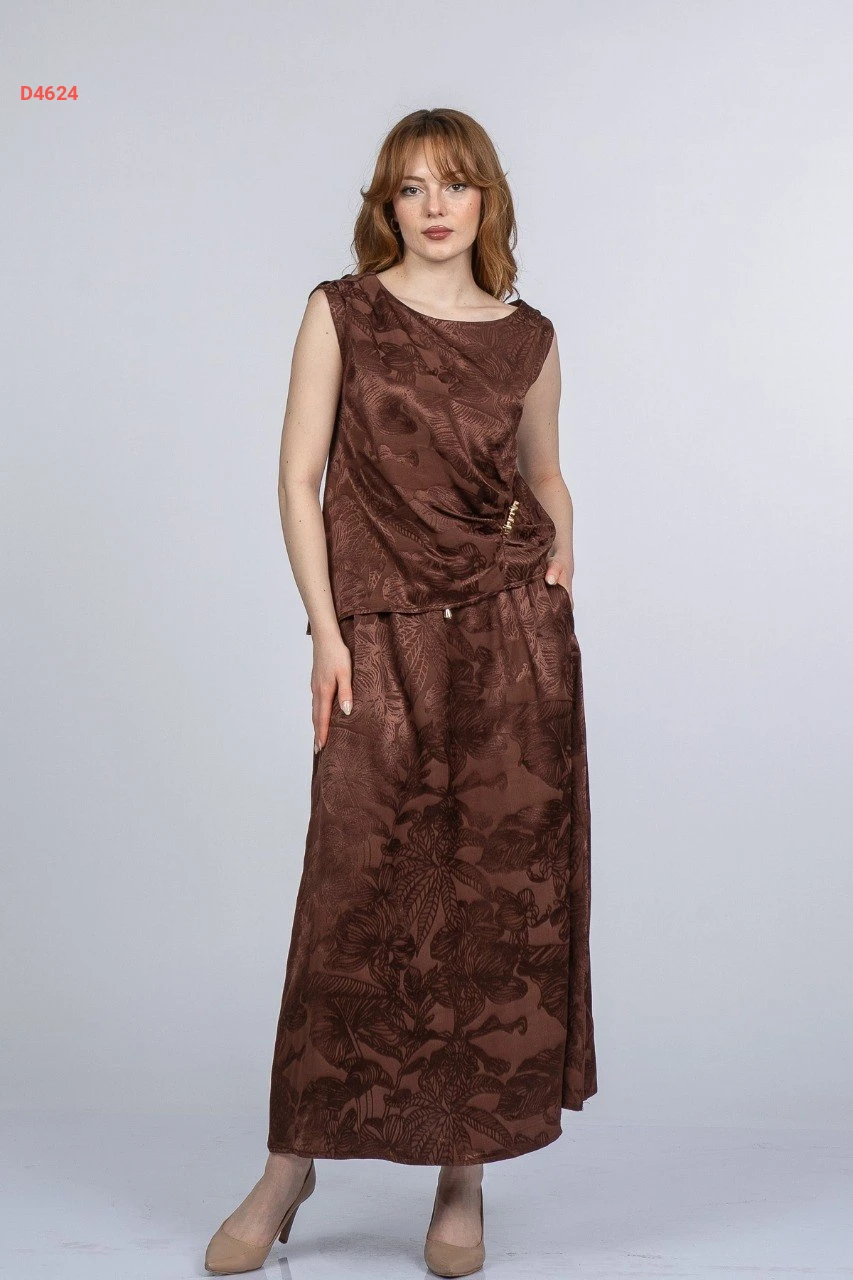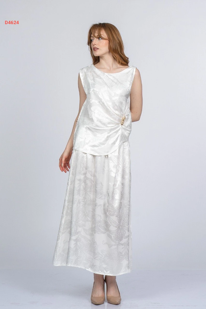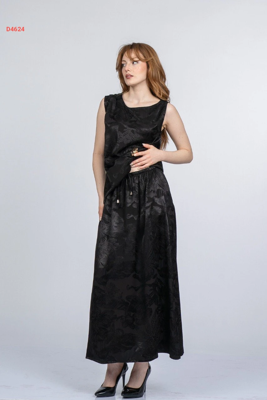 طقم تنورة جاكار وبلوزة حفر ببروش
