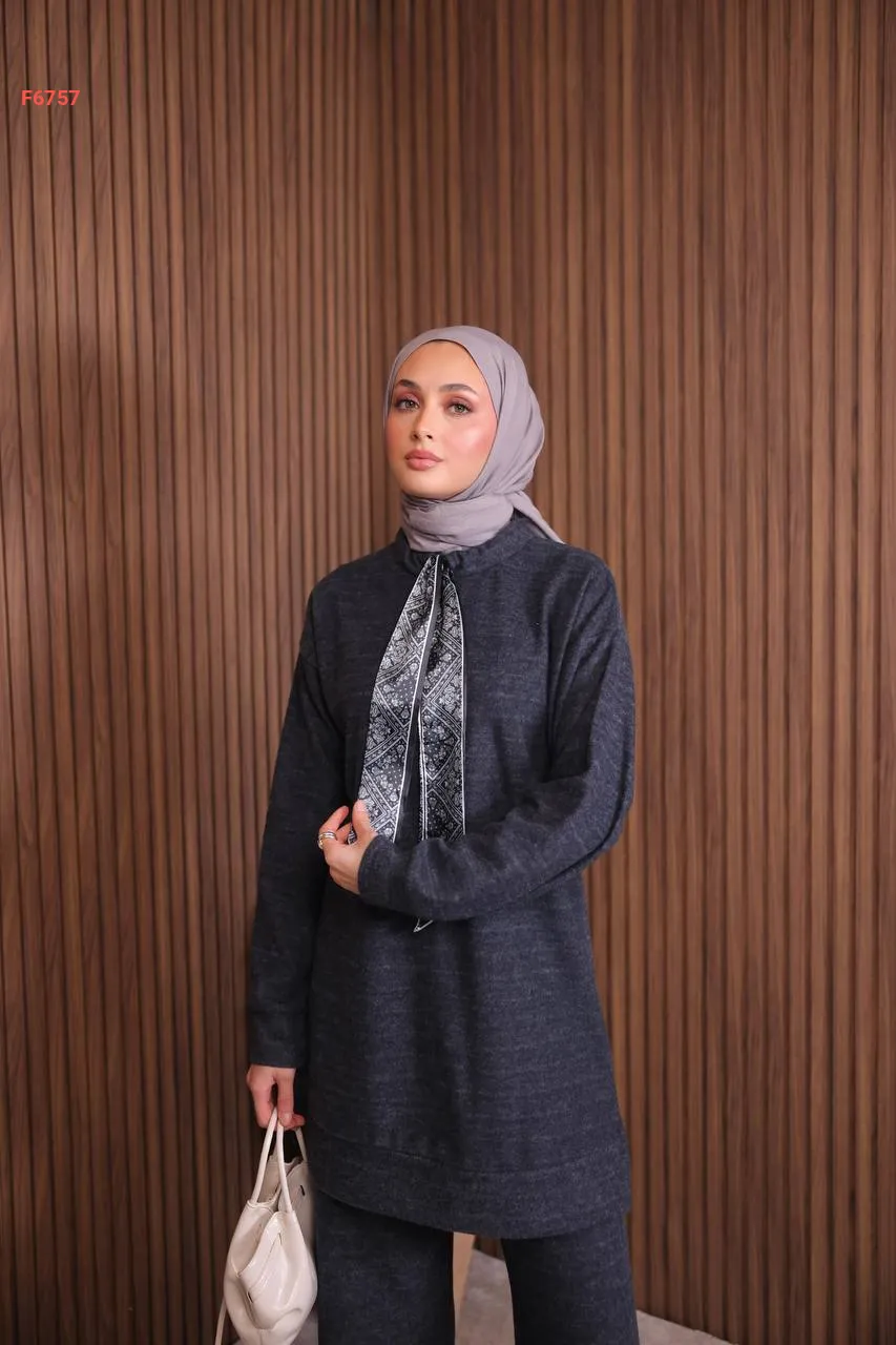 طقم بنطال جاكار وتونيك بفولار