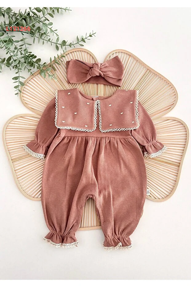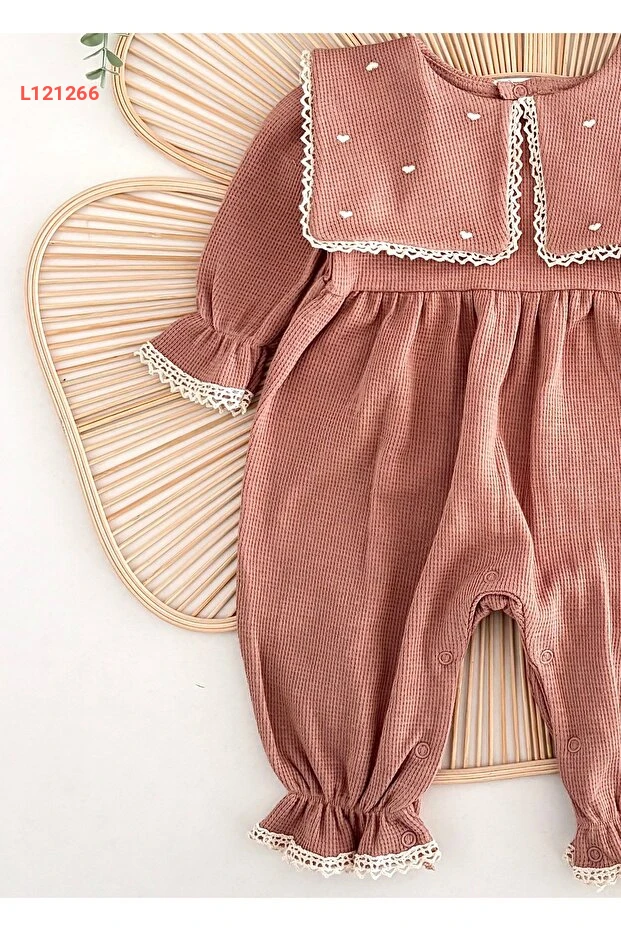 طقم ميتا من جامي بيبي: تونيك مع طوق منديل ومطرز قلوب من قماش الوافل 100% قطن