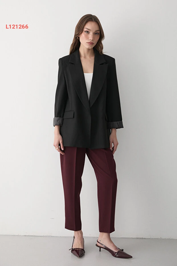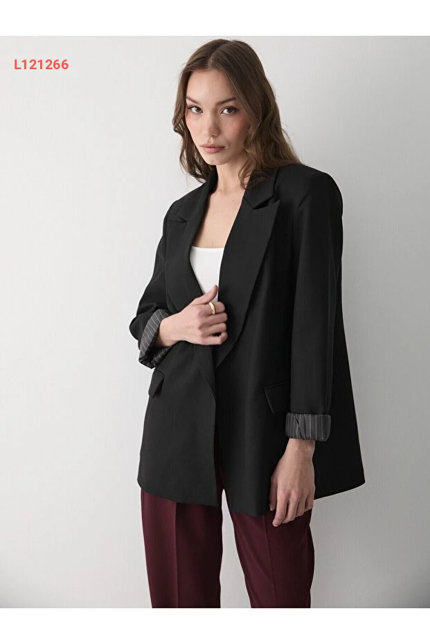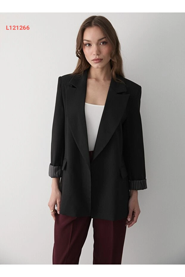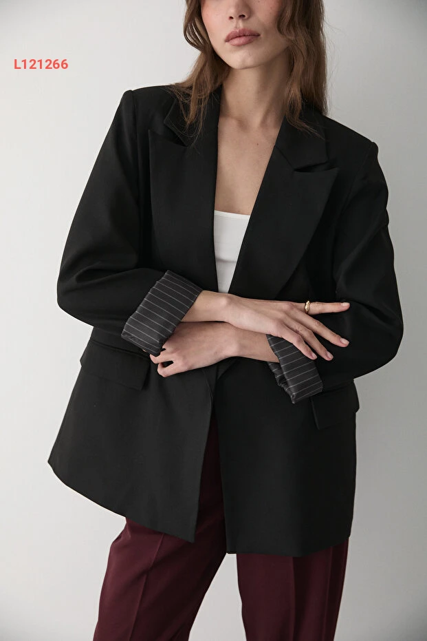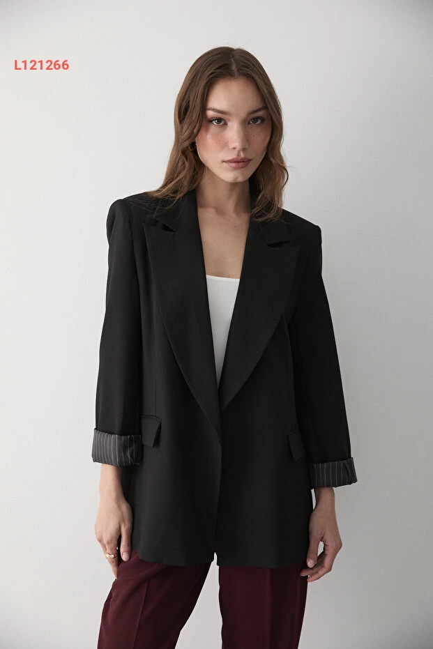 جاسته - بلايزر نسائي أسود مخطط مع بطانة وأكمام مميزة