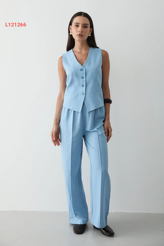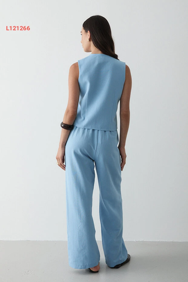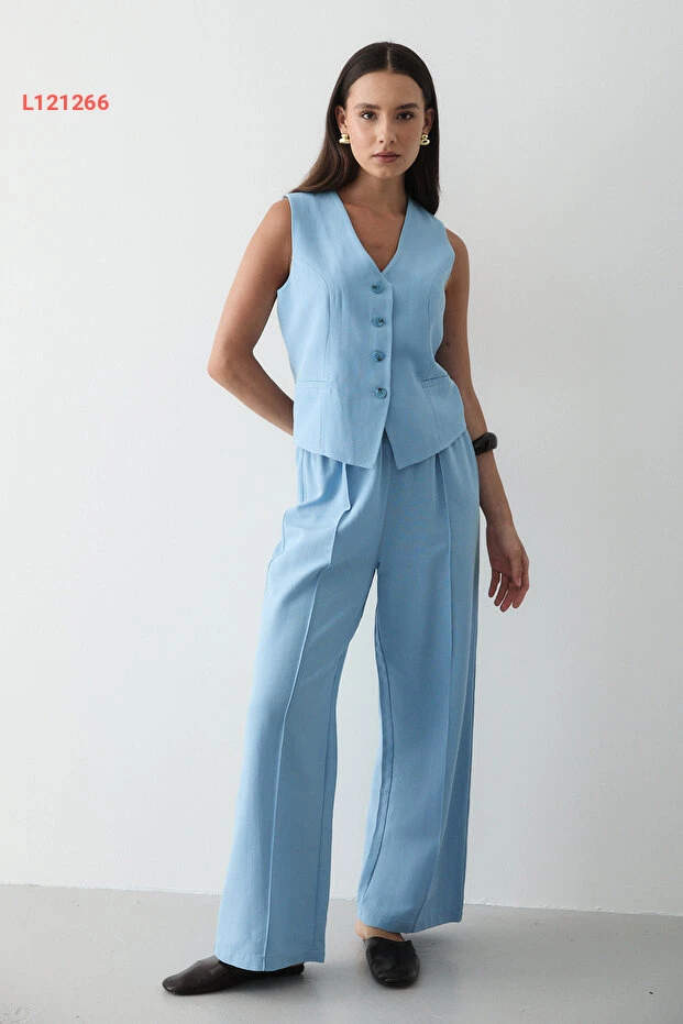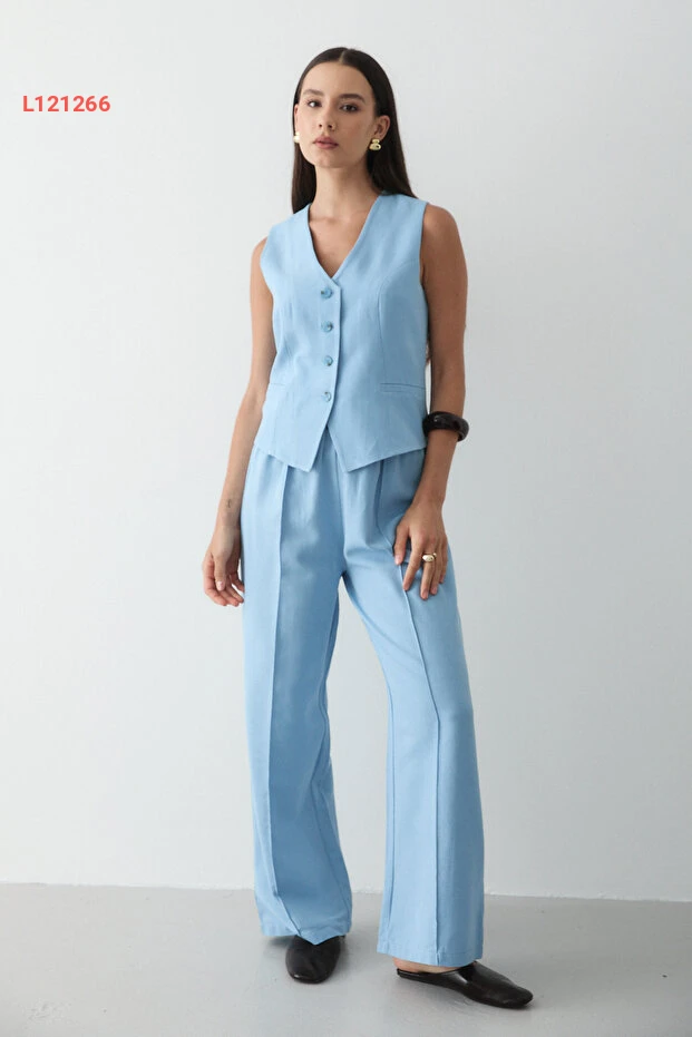 استمتعي بأناقتكِ الفائقة مع مجموعة JASTE المثالية، التي تتكون من سترة زرية باللون الأزرق وبنطال بالاسلو بخصرٍ مرن مصنوعة من الكتان الفاخر. تضفي هذه القطع لمسة من الراحة والأناقة على إطلالتك، مما يجعلها خيارًا مثاليًا للمناسبات اليومية أو الخاصة، حيث تجمع بين التصميم العصري والراحة المطلقة.