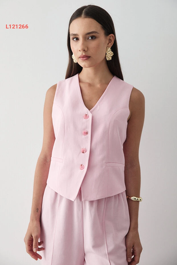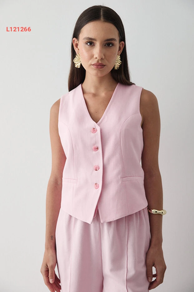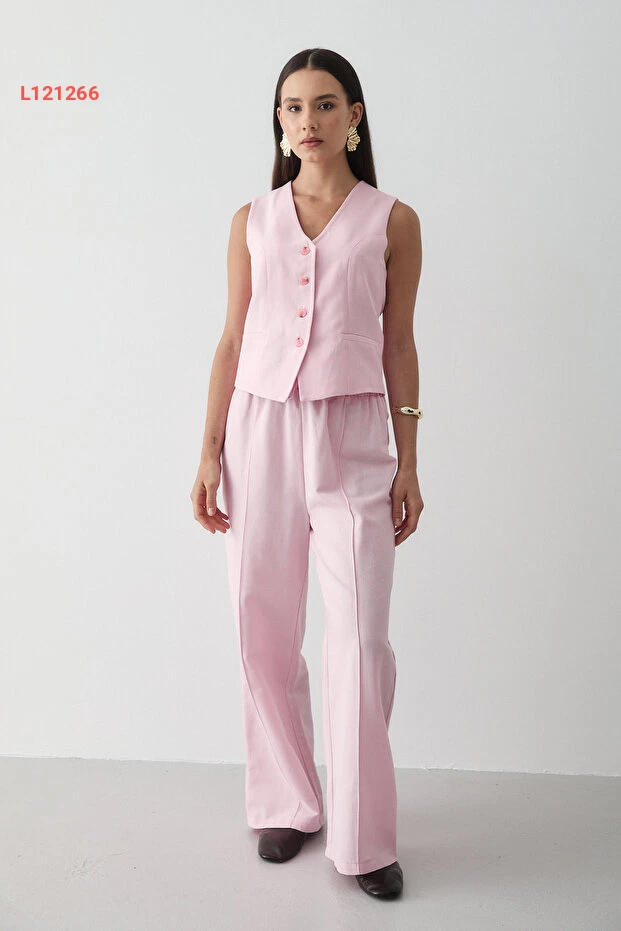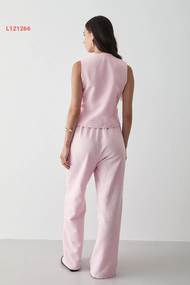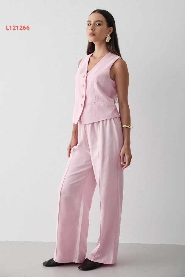 احصلي على إطلالة أنيقة ومريحة مع مجموعة JASTE التي تضم سترة وردية مزودة بأزرار وبنطال واسع بحزام مطاطي. مصنوع من قماش الكتان الناعم، يوفر لك الراحة طوال اليوم بينما يضفي عليك لمسة عصرية لا مثيل لها، مما يجعلها الخيار المثالي لكل مناسبة!