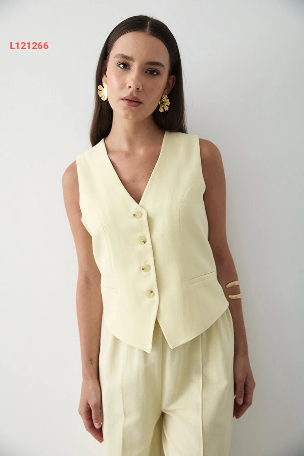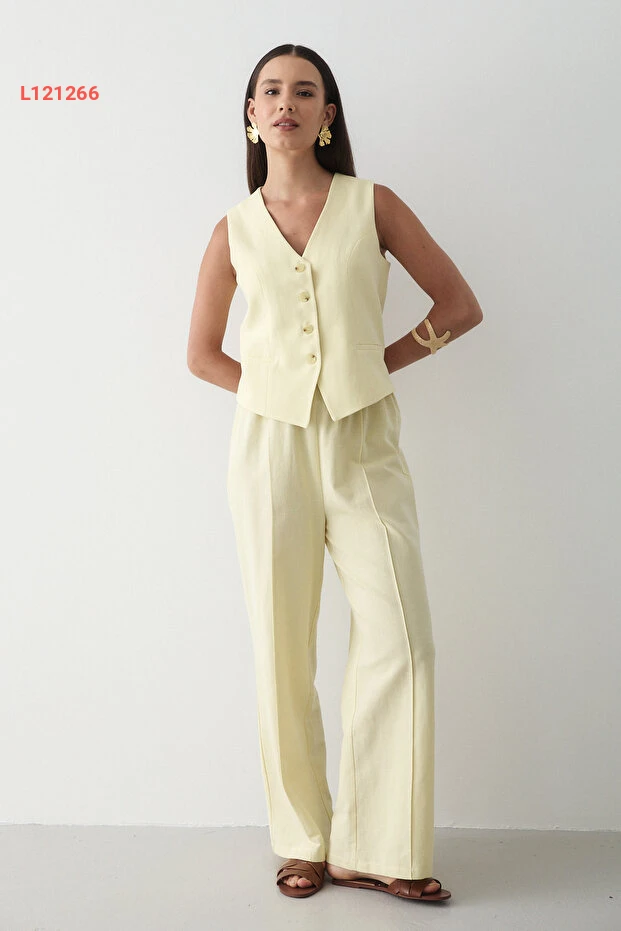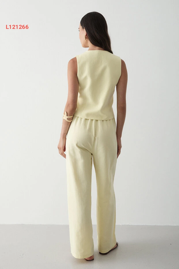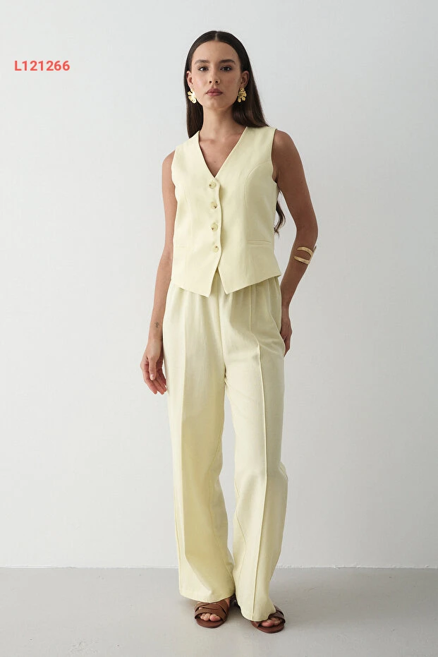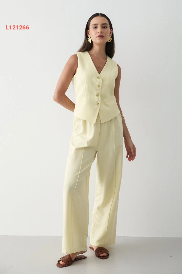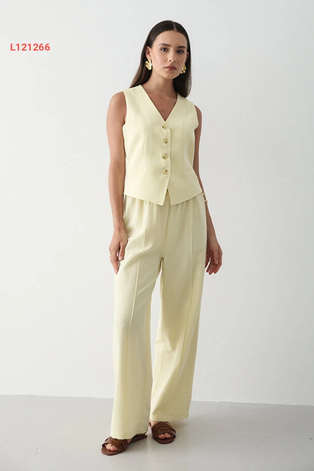استمتعي بأناقتك مع طقم JASTE المكون من سترة صفراء مزودة بأزرار وسروال بالازو ذو الخصر المرن. مصنوع من قماش الكتان الفاخر، يوفر لك هذا الطقم الراحة والحرية في الحركة، بينما تضيف لمسة اللون الزاهي لمظهرك إشراقة وحيوية لا مثيل لها. مثالي للإطلالات اليومية أو المناسبات الخاصة!