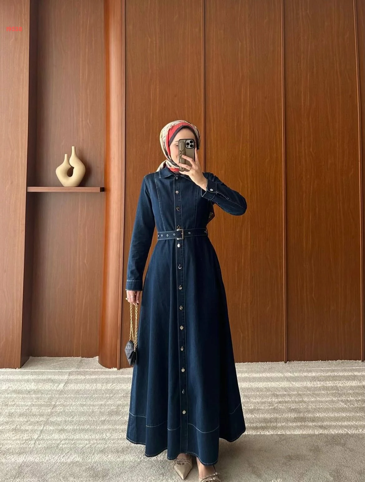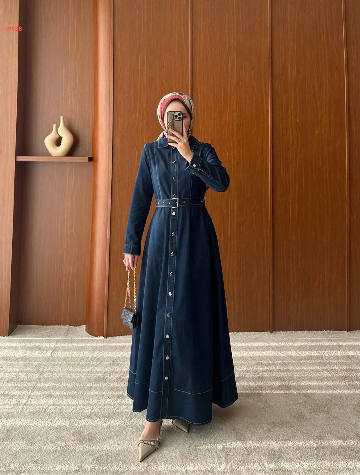 فستان جينز بزنار محجبات