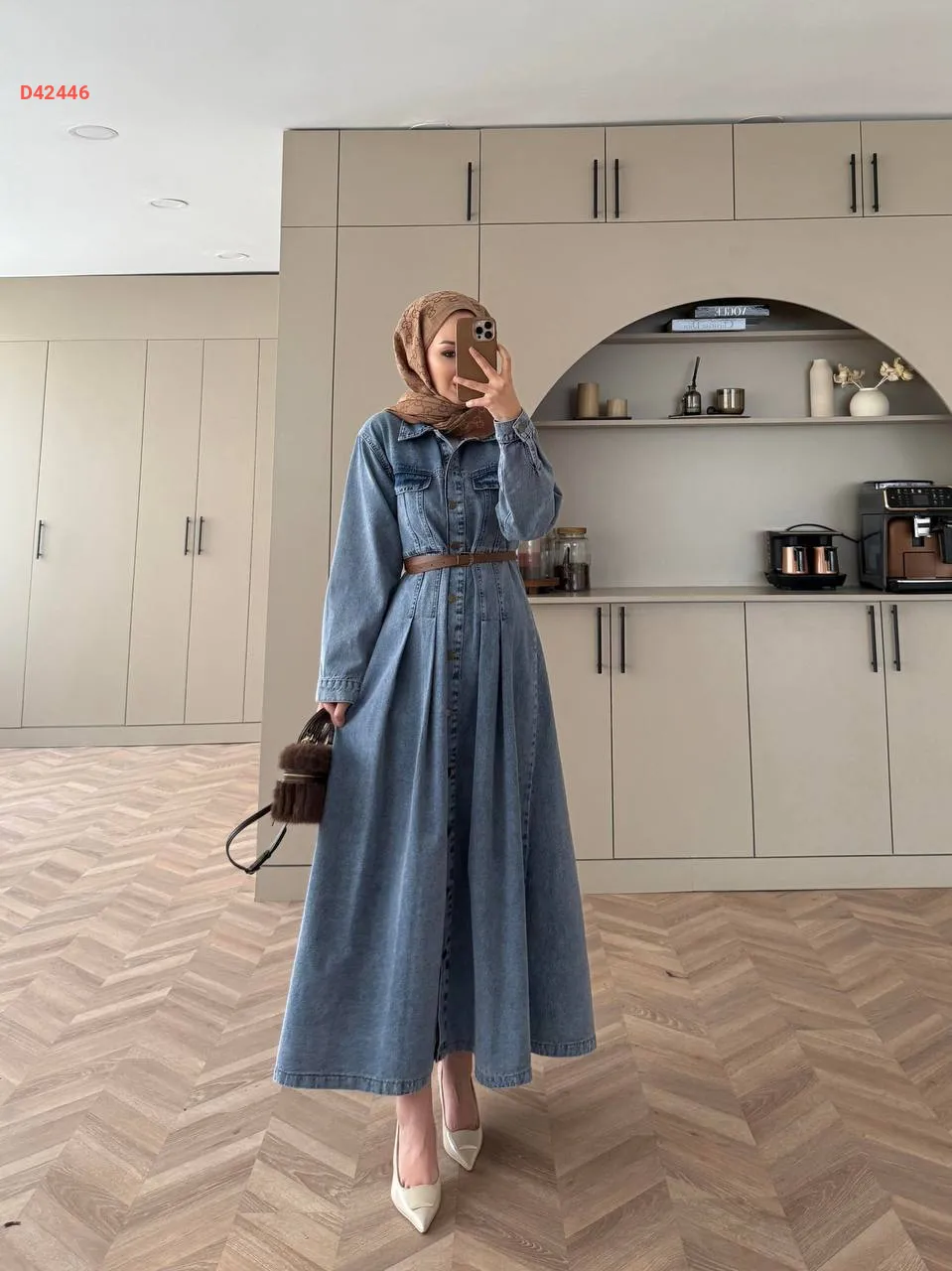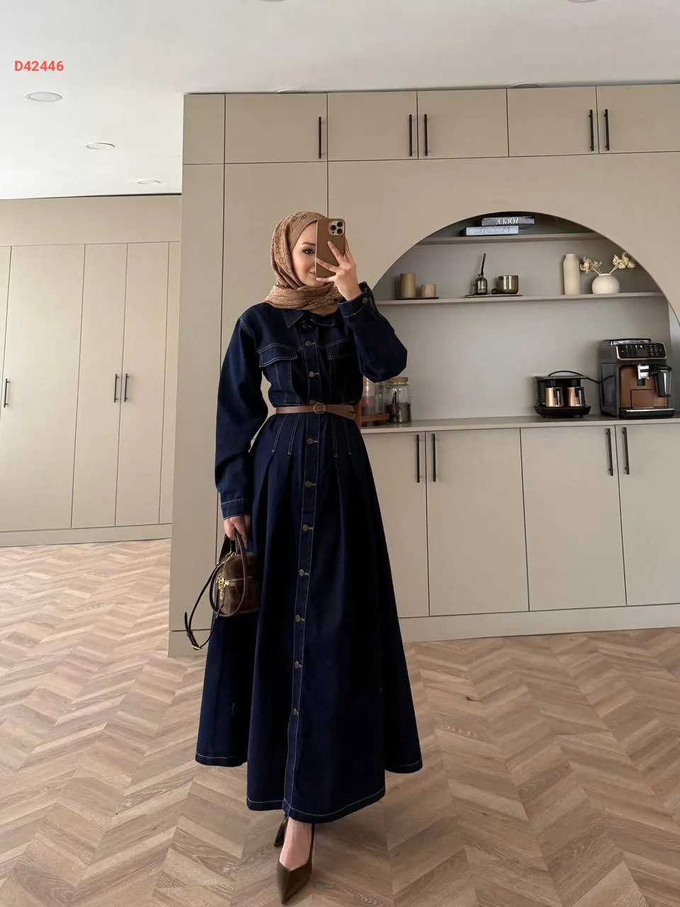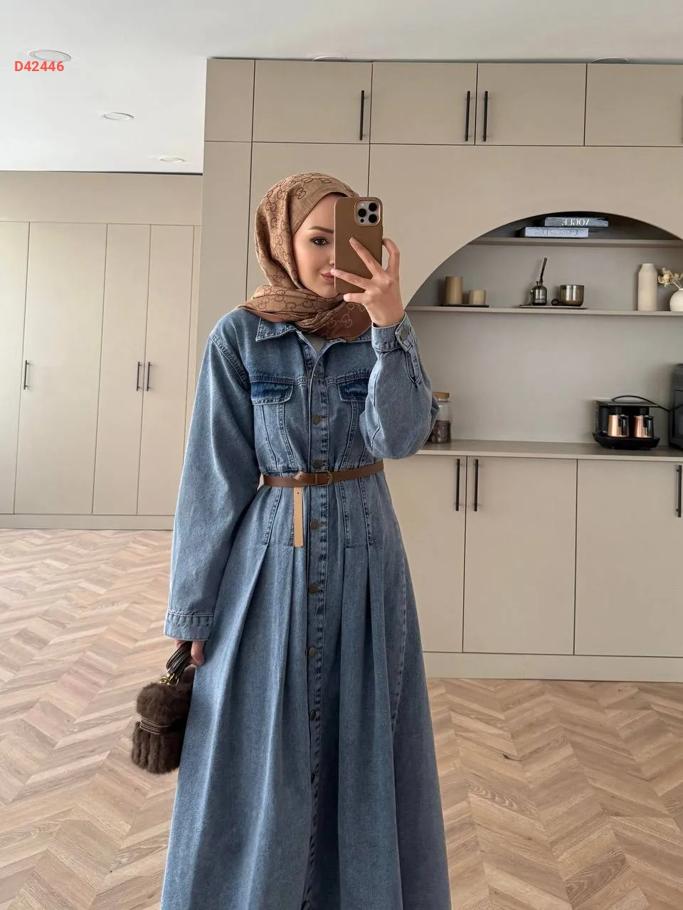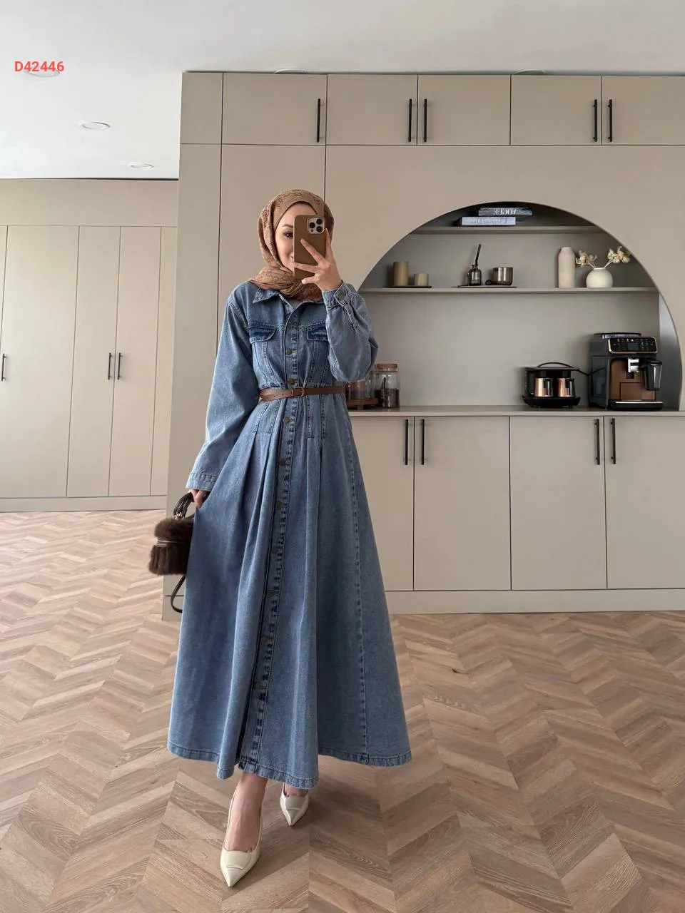 فستان جينز بأزرار، مع حزام