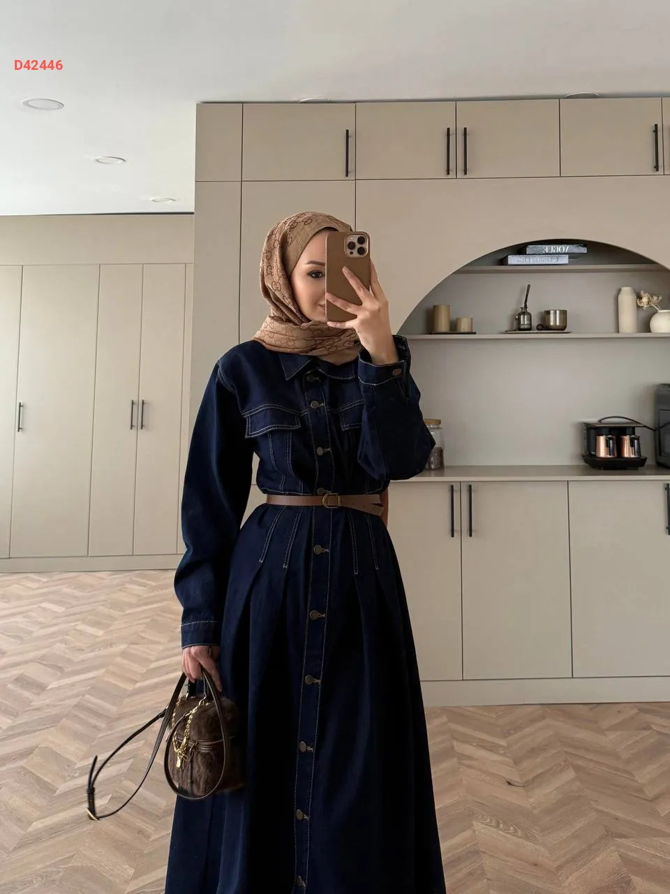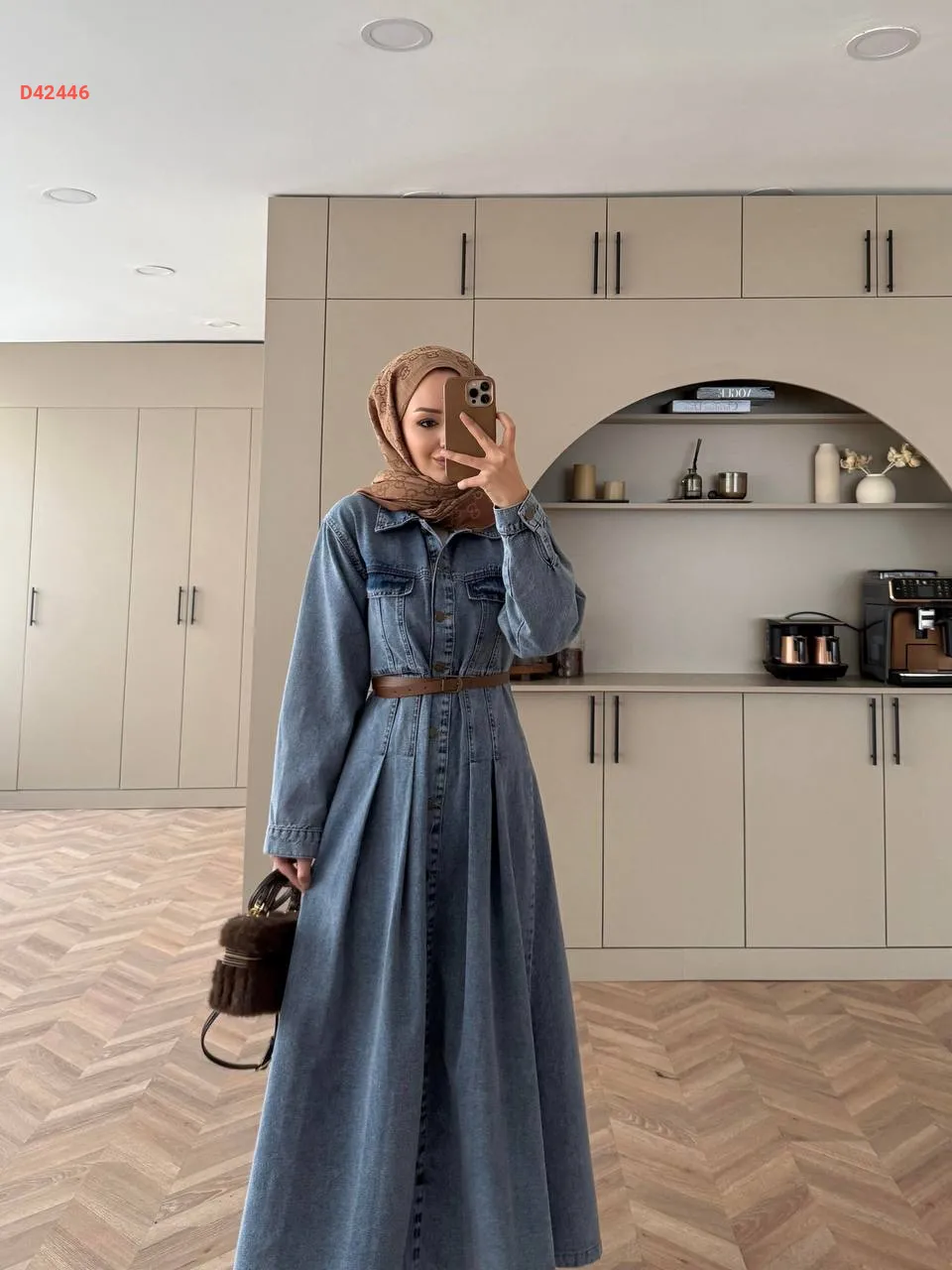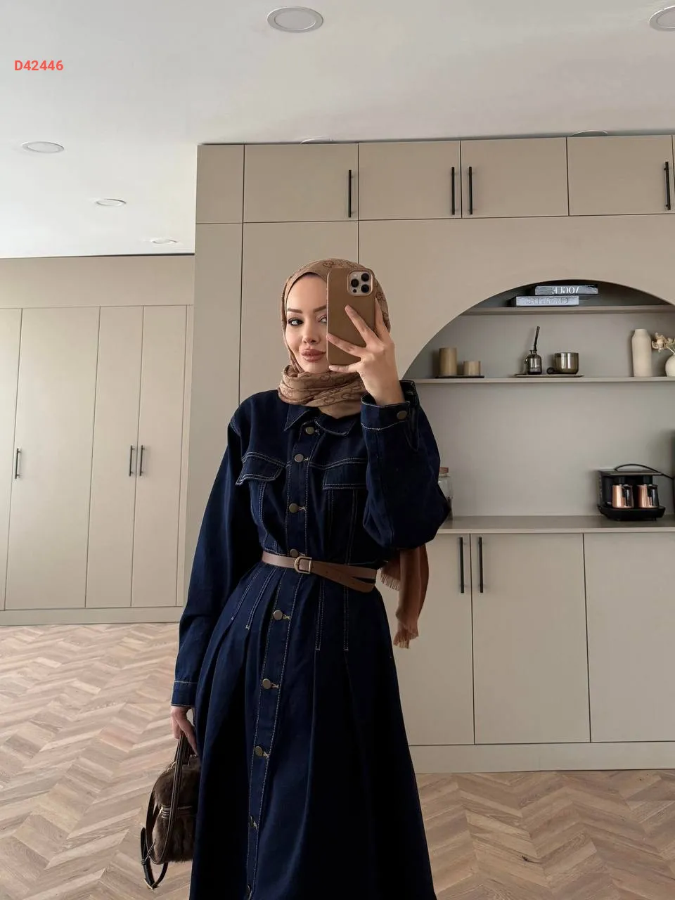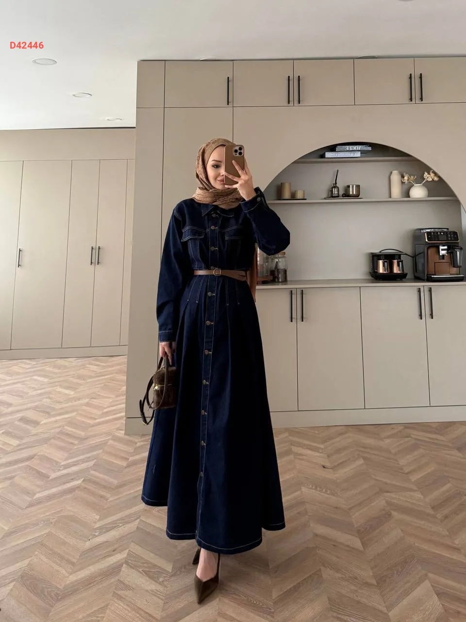 فستان جينز بأزرار، مع حزام