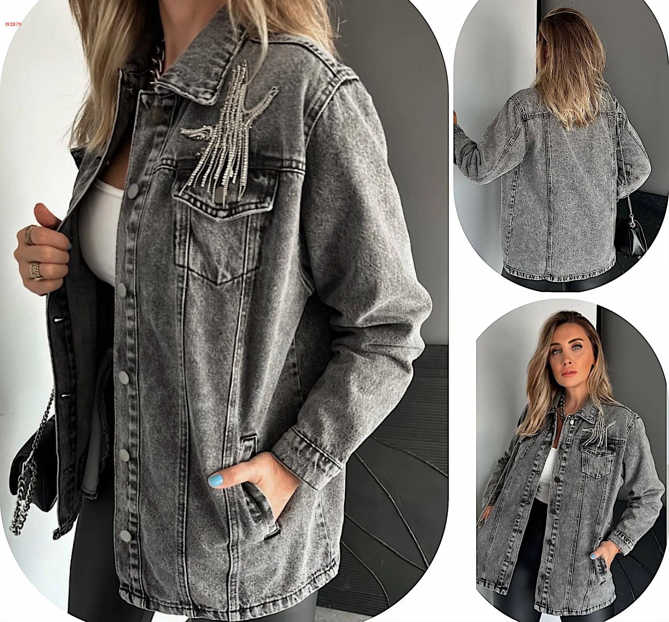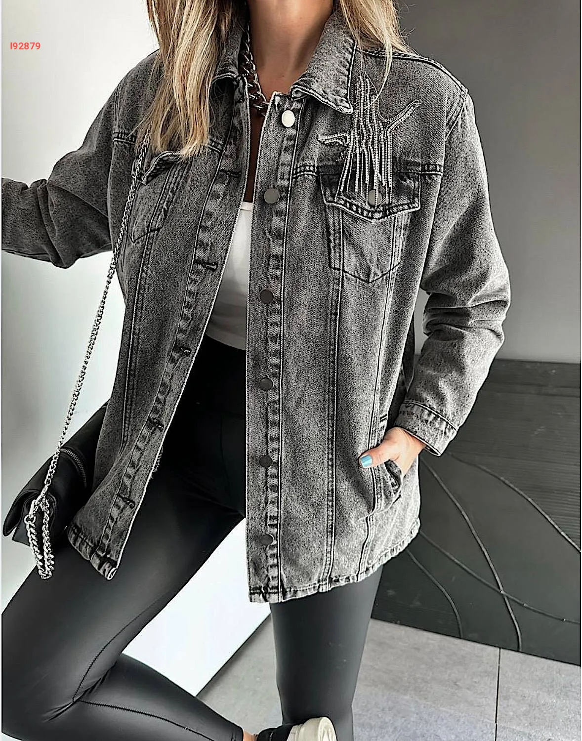 جاكيت جينز بسلاسل حجرية