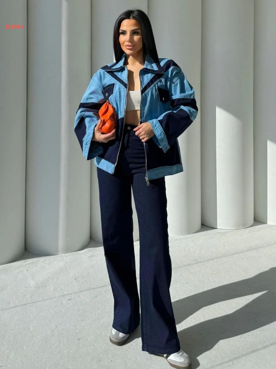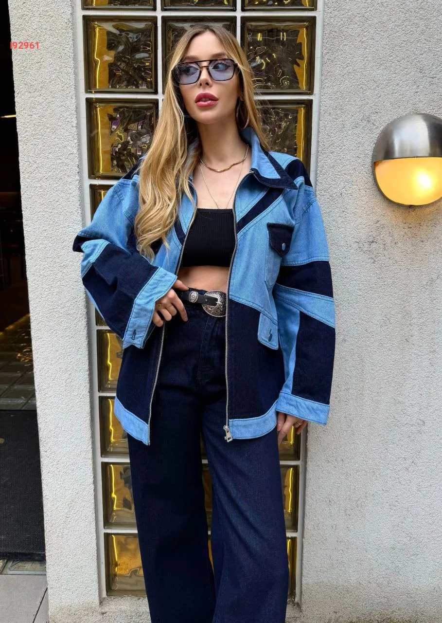 طقم طقم جينز ، جاكيت بحساب ، بنطال خصر عالي