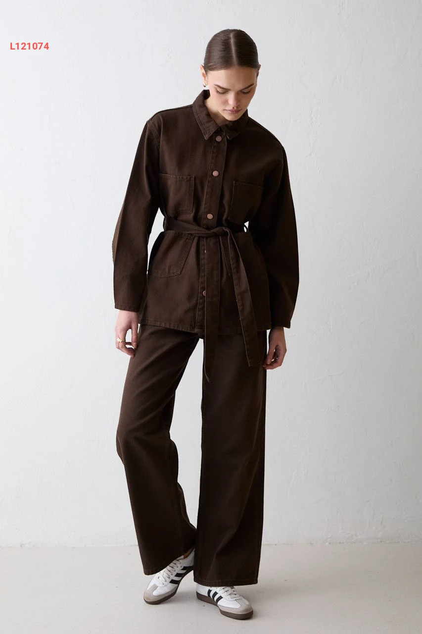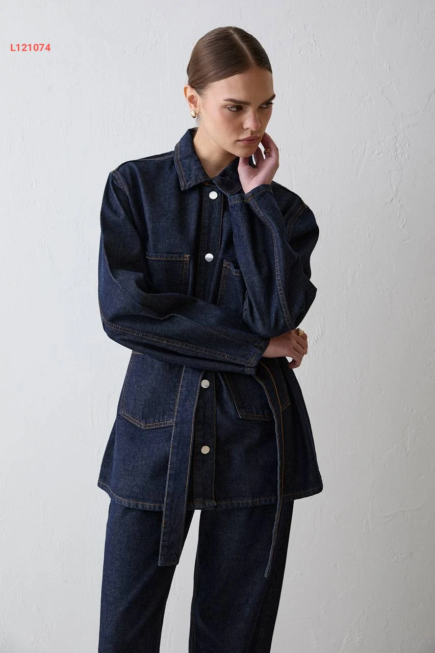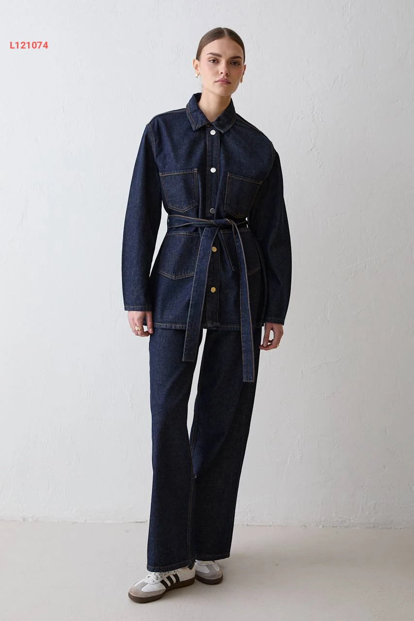 طقم بنطال جينز مع جاكيت بزنار