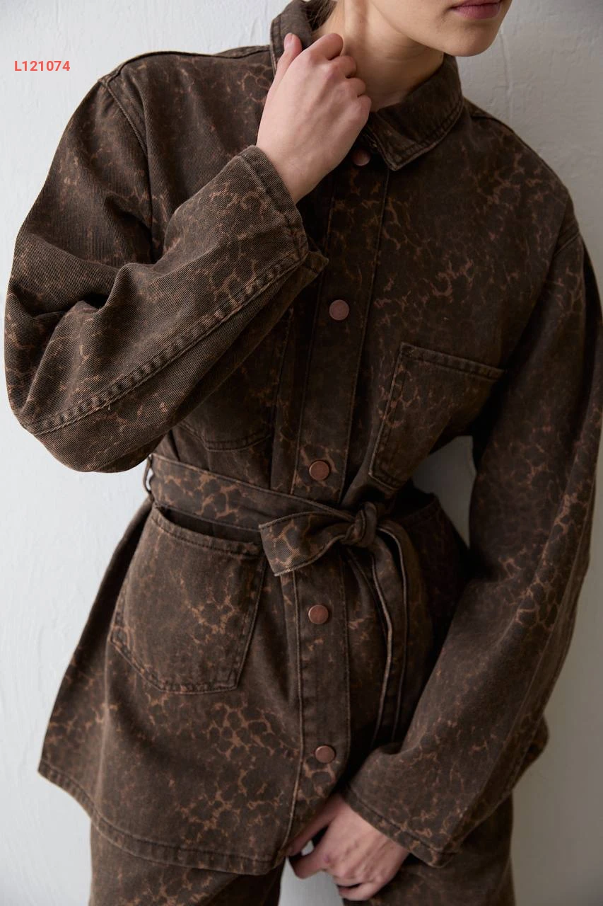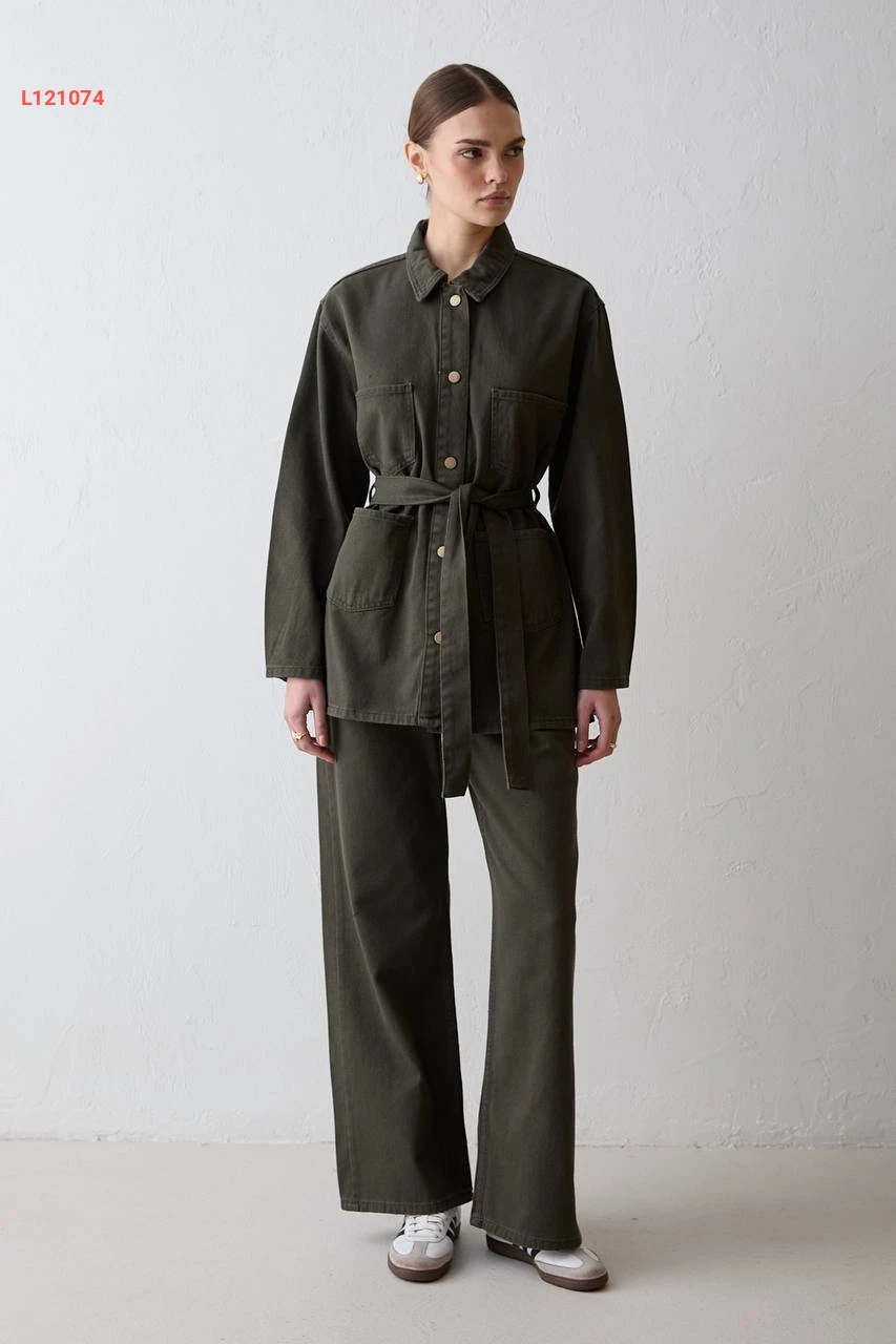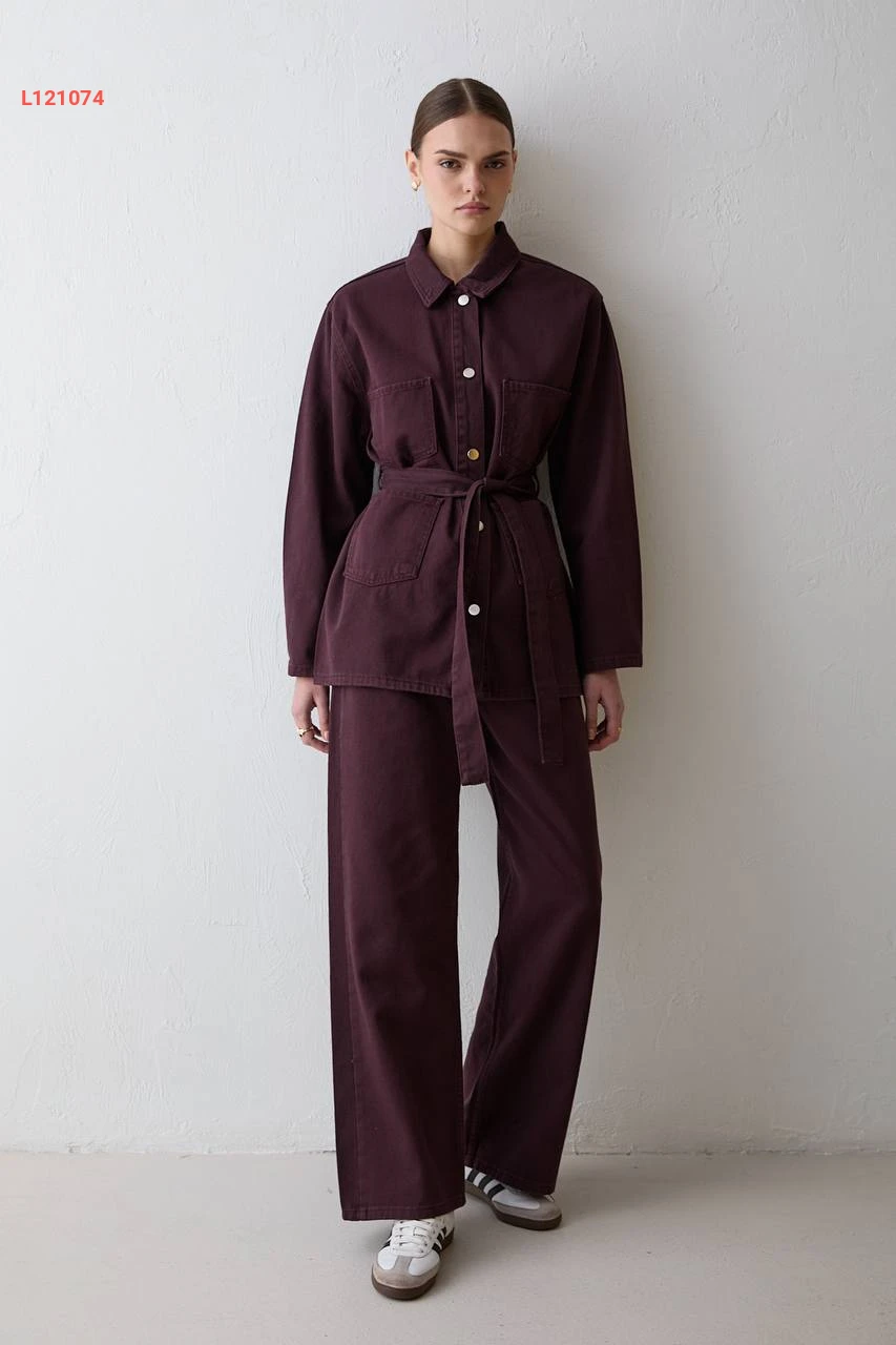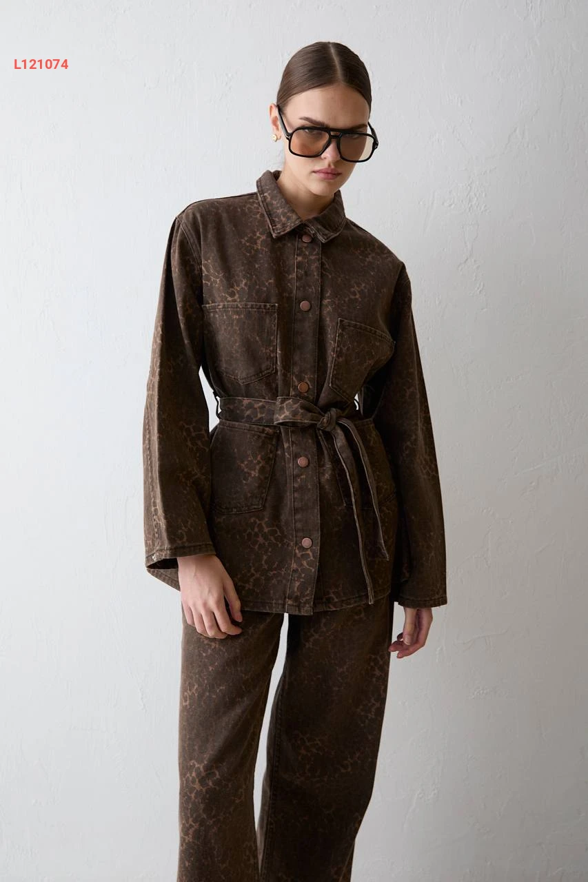 طقم بنطال جينز مع جاكيت بزنار