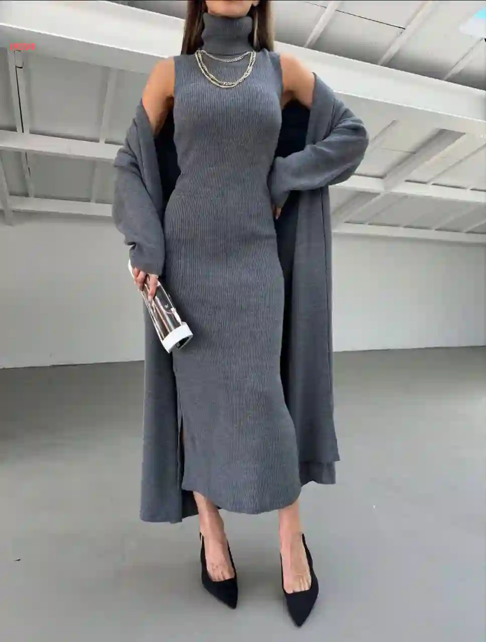 طقم تريكو فستان طويل مع جاكي...
