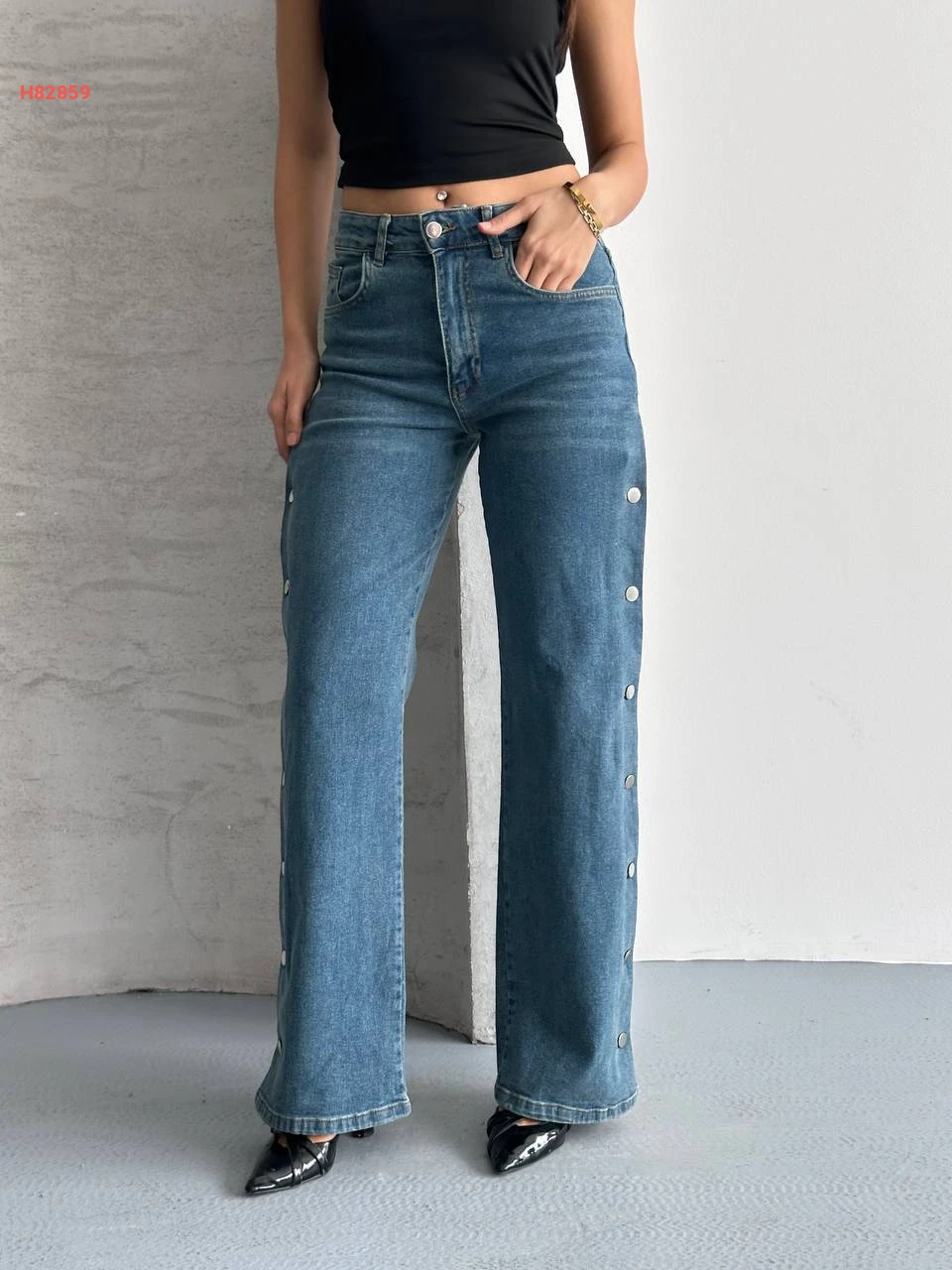 بنطال جينز بأزرار جانبية