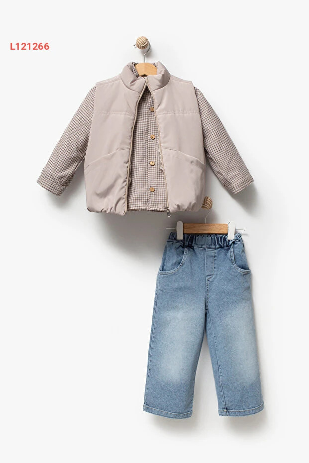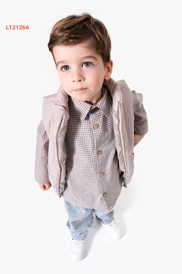 اكتشفوا أناقة فصل الأعياد مع طقم Jikko Baby المكون من ثلاثة قطع، الذي يجمع بين القميص الكلاسيكي ذو التصميم المميز والسترة الأنيقة. مصنوع من خامات عالية الجودة، يضمن راحة تامة لطفلك أثناء الاحتفال، مع لمسة من الأناقة العصرية التي تبرز شخصيته. اختياره الأمثل للمناسبات، ليظهر طفلك بأفضل طلةٍ له!