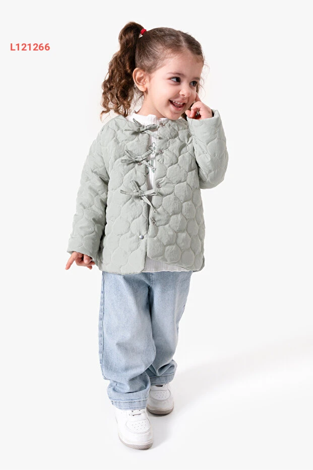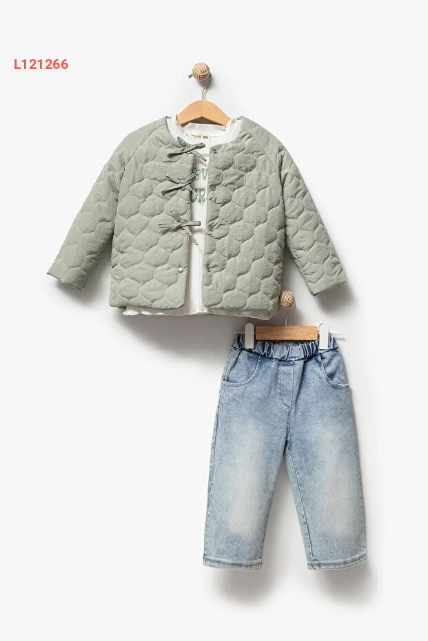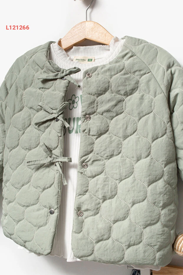 طقم بنات مكون من 3 قطع - معطف كابيتون مزين بتفاصيل فيونكة من جيكو