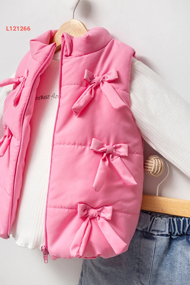 طقم بناتي ثلاثي القطع مع سترة مملوءة بالفينكول للأطفال من جيوكو 9072