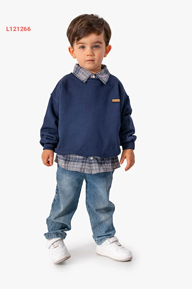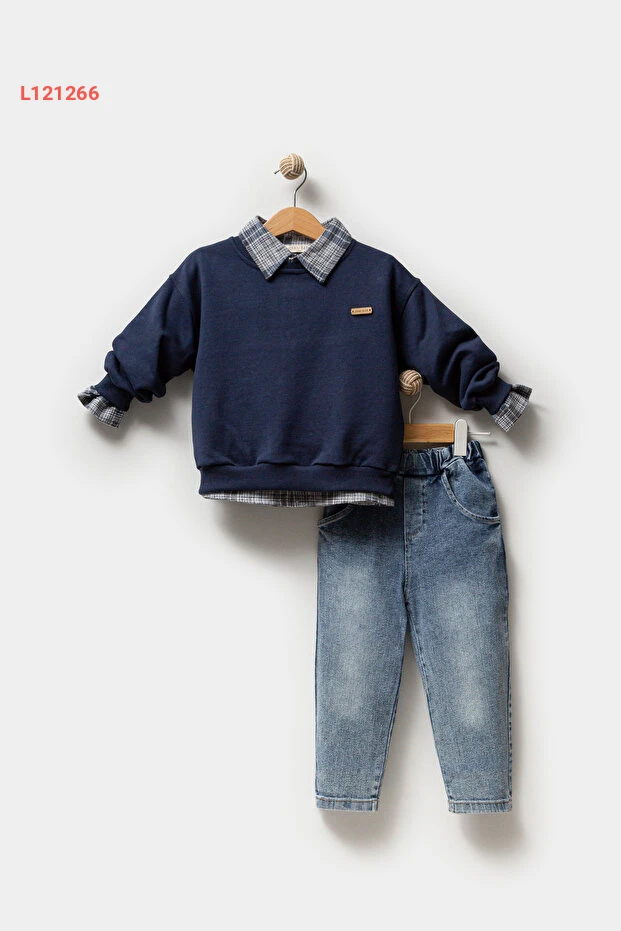 طقم جيلكو للأولاد: قميص، سويت شيرت، وسروال جينز 3 قطع