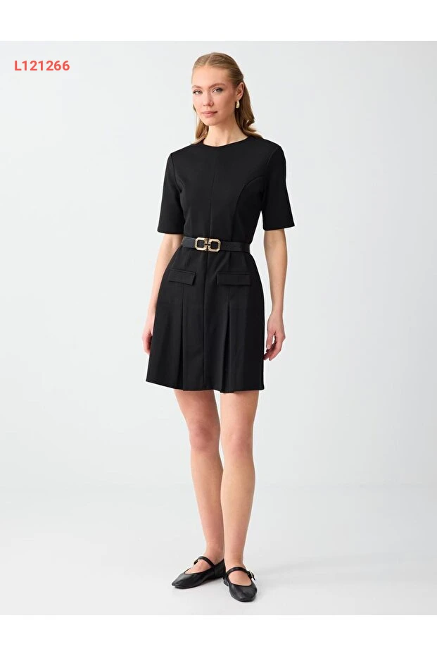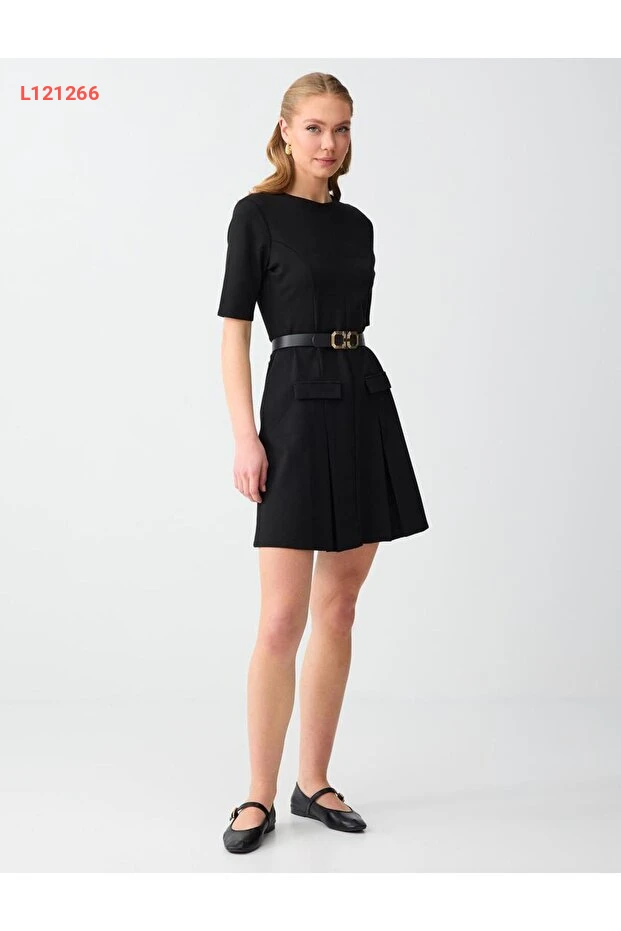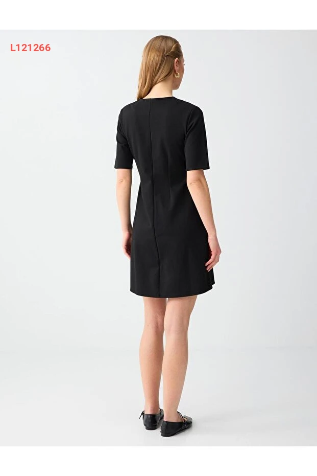 فستان قصير محبوك بأكمام قصيرة وياقة دائرية من جيمي كي باللون الأسود