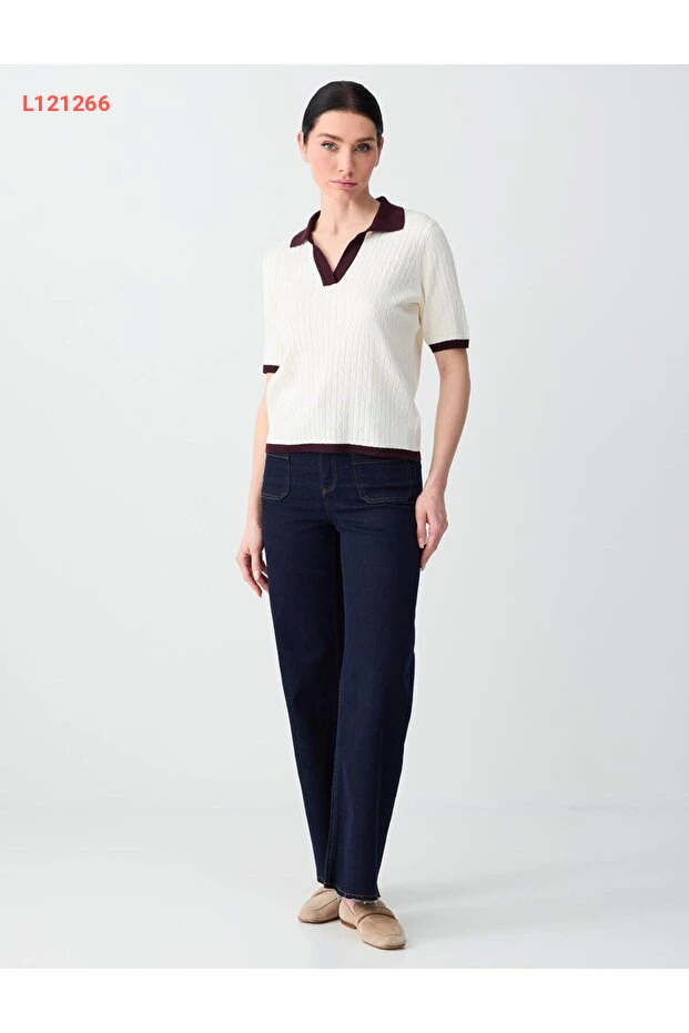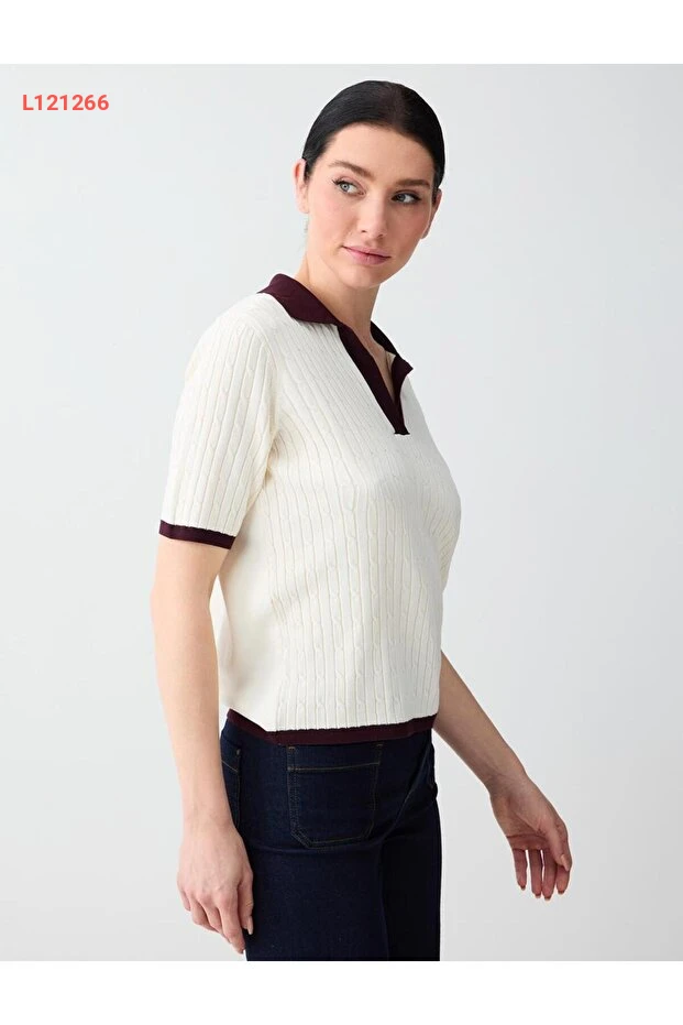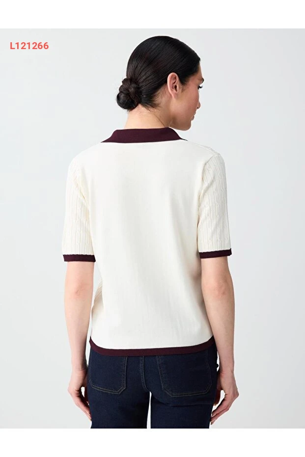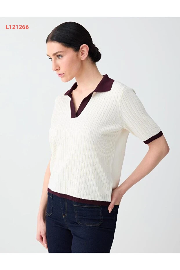 بلوزة تريكو قصيرة الأكمام بياقة بولو من جيمي كي بلون إكرو