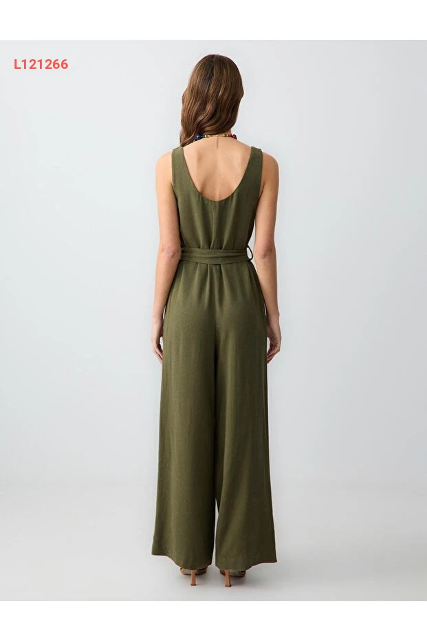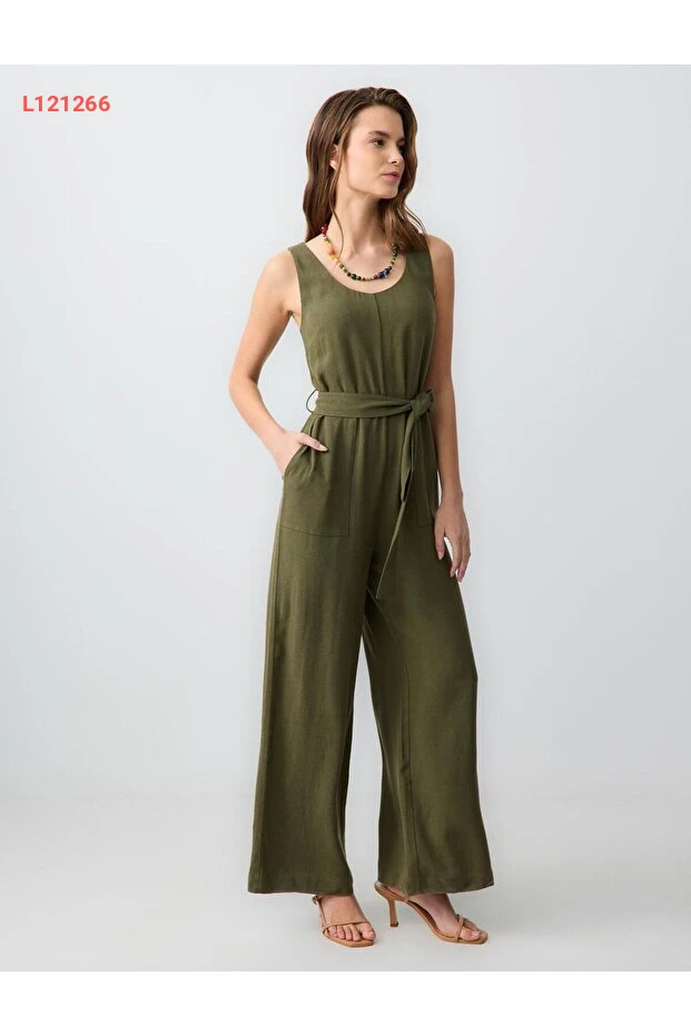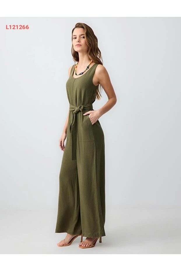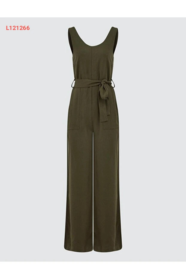 تولوم كتان مريح بلون الزيتي مع حبال للخصر من جيمي كي