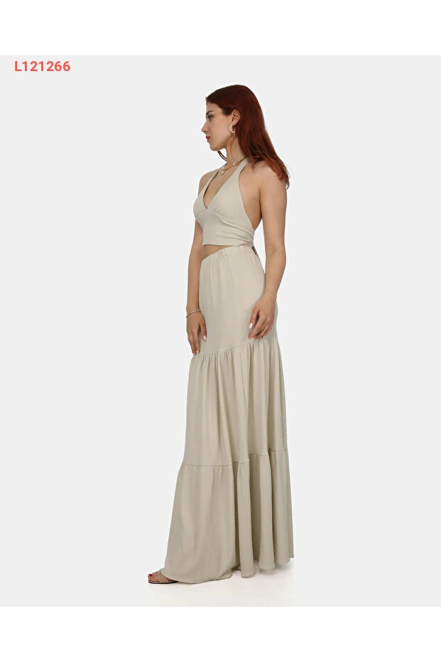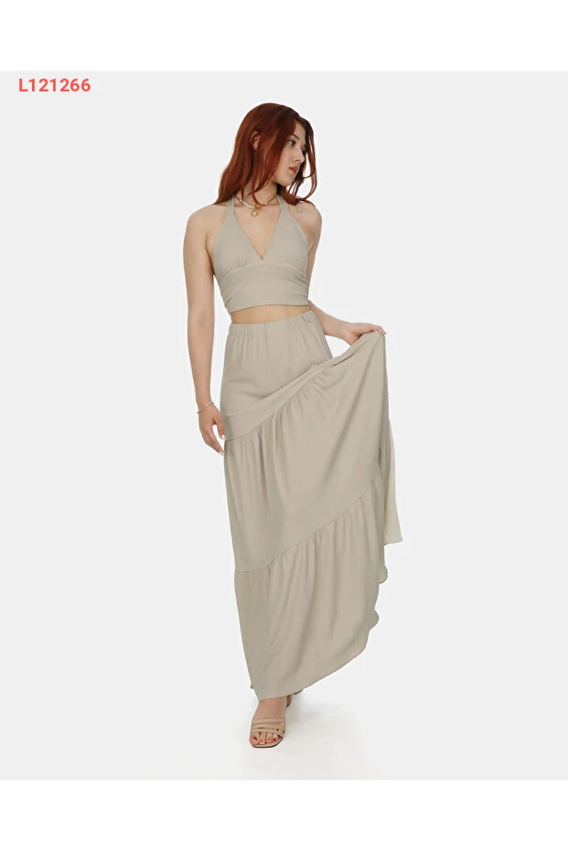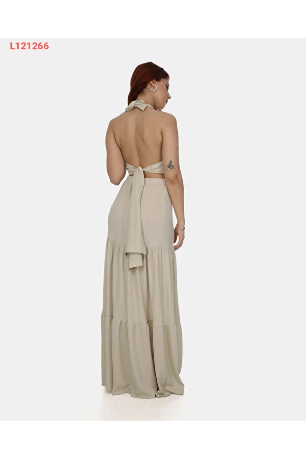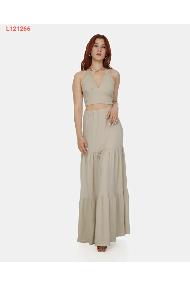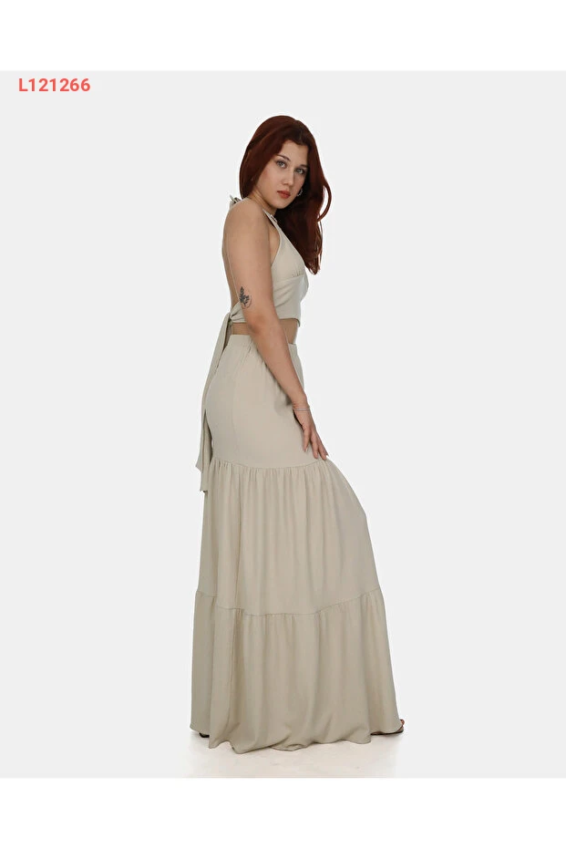 طقم تنورة طويلة مزينة برباط للعنق والظهر من جاي آند كيه ستورز