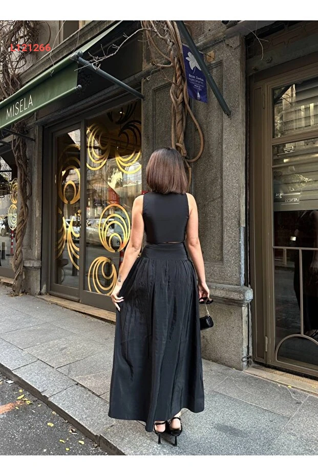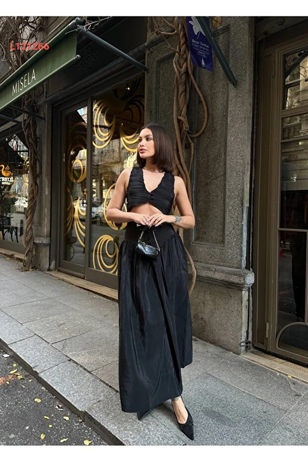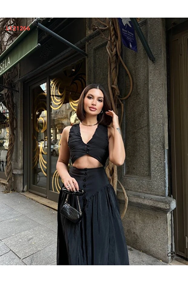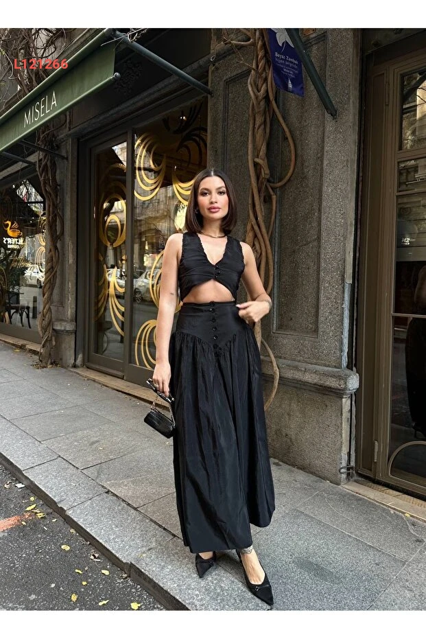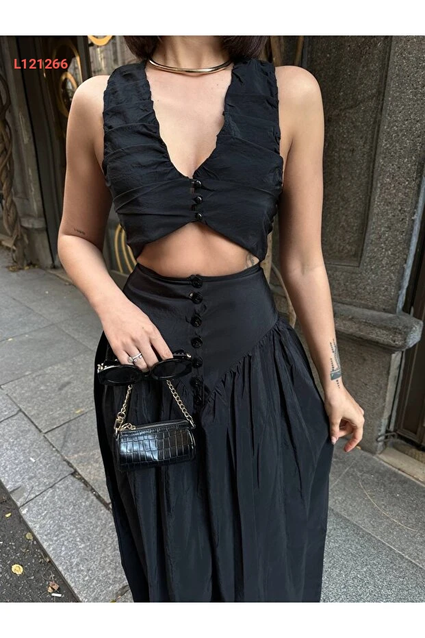 طقم ماكسي مزدوج بتفاصيل أزرار وفتحة على شكل حرف V من Sedef Kumaş