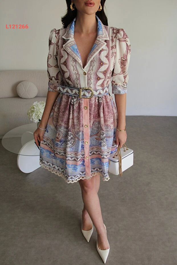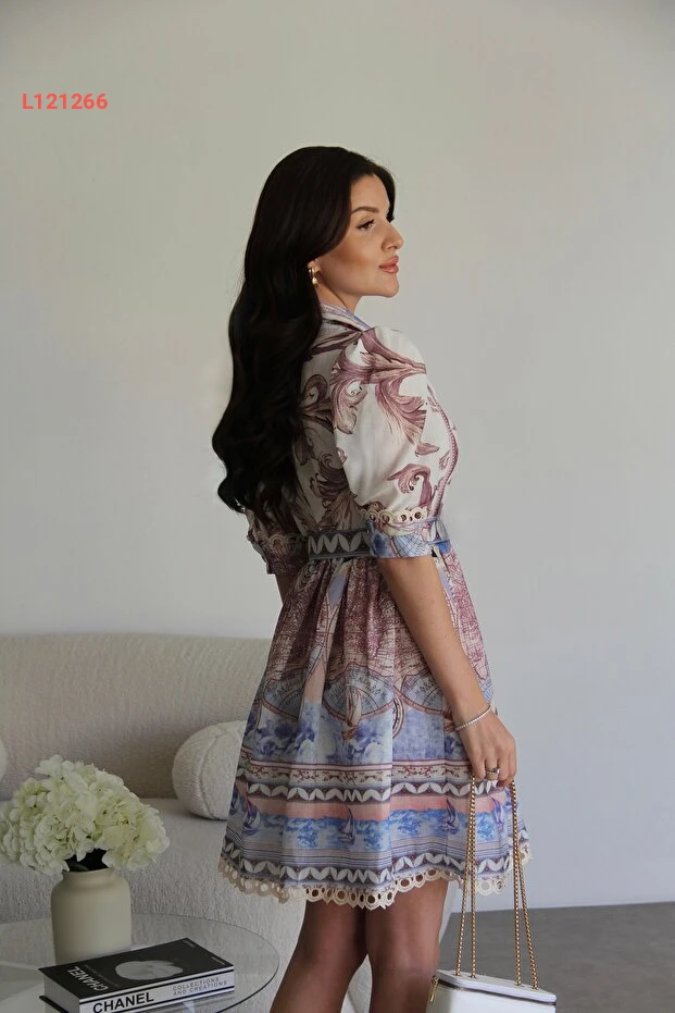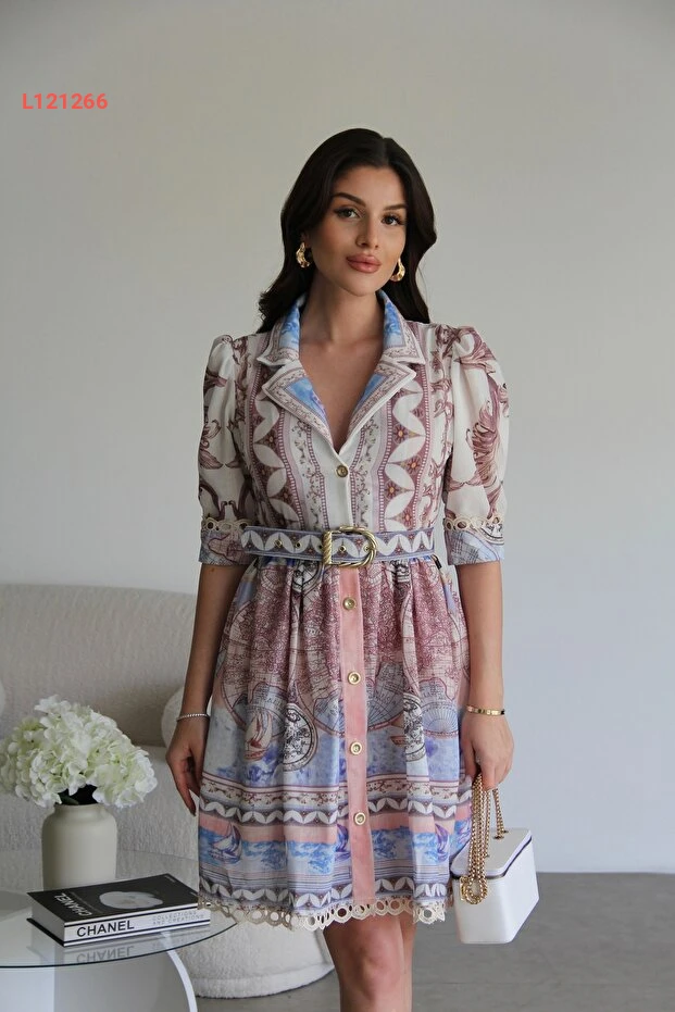 فستان كتان مصمم مزين بالدانتيل مع حزام وأزرار من جوليدريس