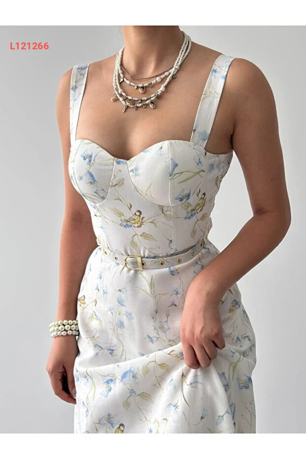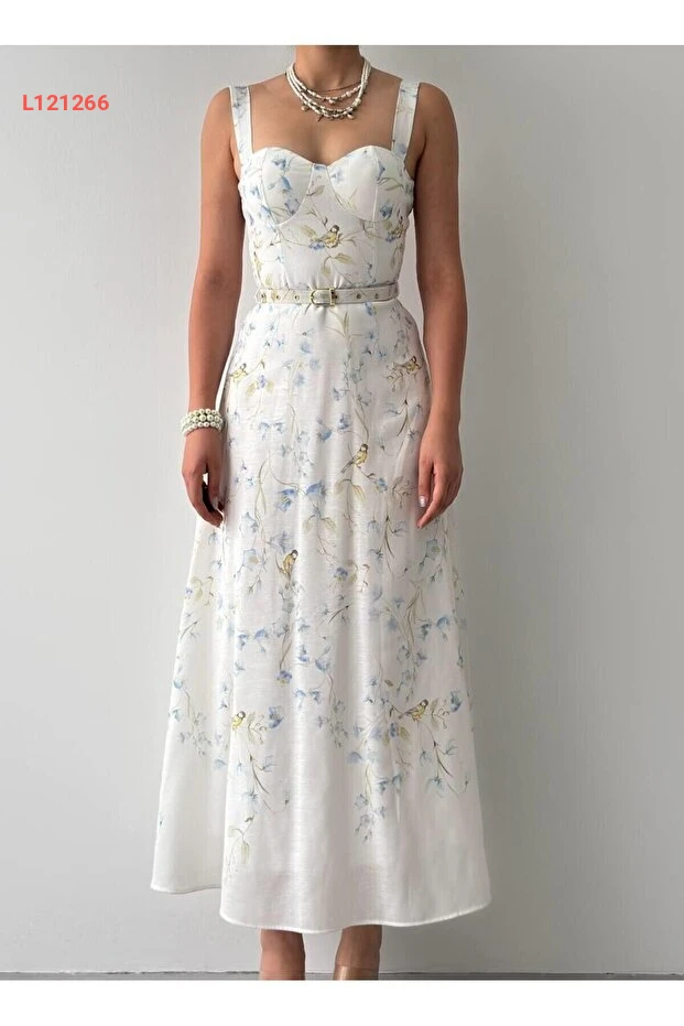 فستان كتان ميدي مزخرف بحزام معدني وطرحة Straplez من جوليدريس