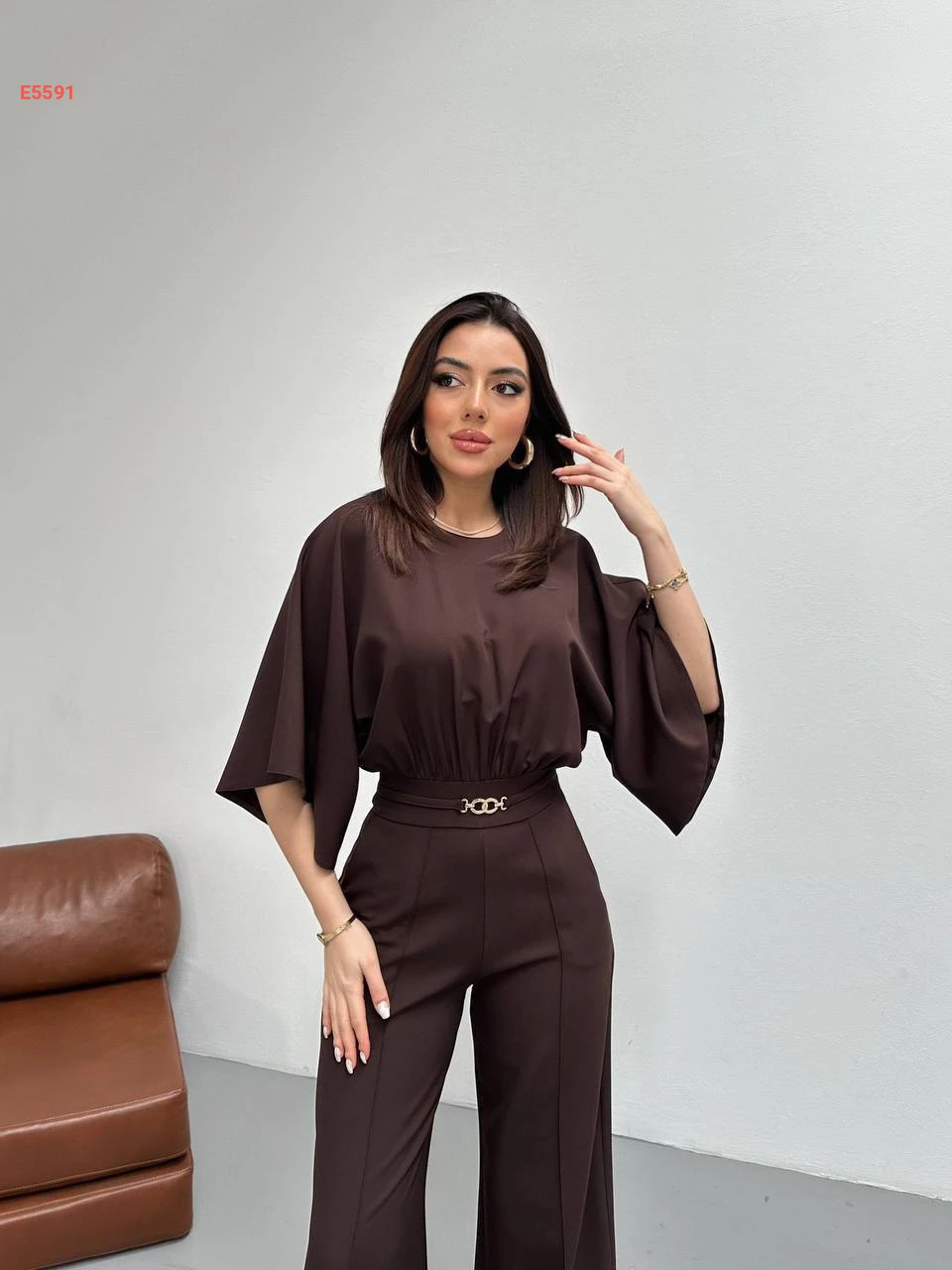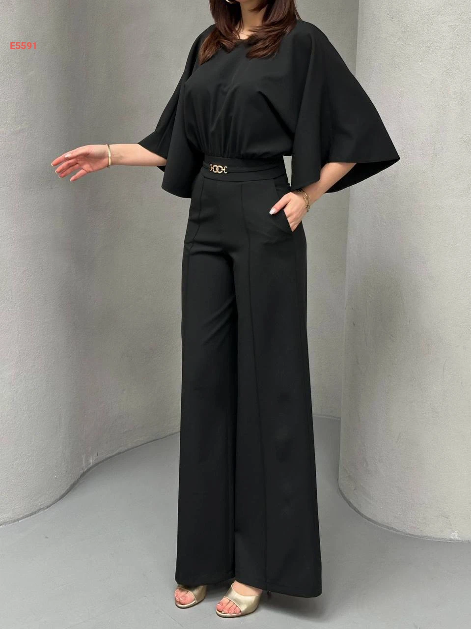 جمبسوت بحزام رفيع وأكمام واسعة