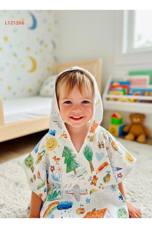 استمتع بأيام الصيف المشمسة مع بانشو JUNİPERUS العضوي من القطن 100%! مصمم للأطفال حتى 9 سنوات، يوفر هذا الموديل المريح والحيوي حماية مثالية من الشمس في الشاطئ أو المسبح، مع نسيج موسلين الناعم الذي يمنح طفلك شعوراً بالراحة والتجدّد. اجعل لحظات الاستمتاع في الماء أكثر سعادة وأمانًا!