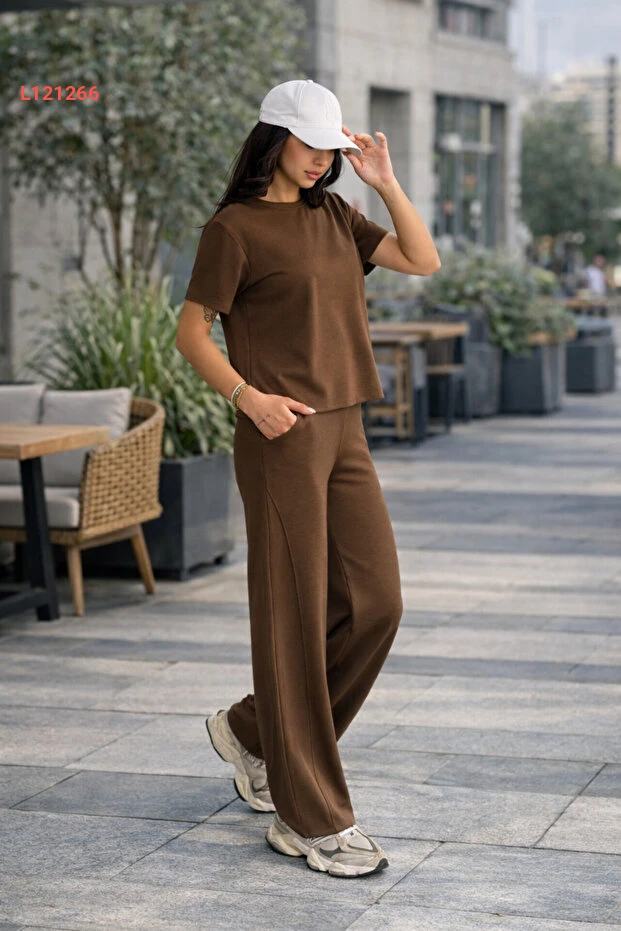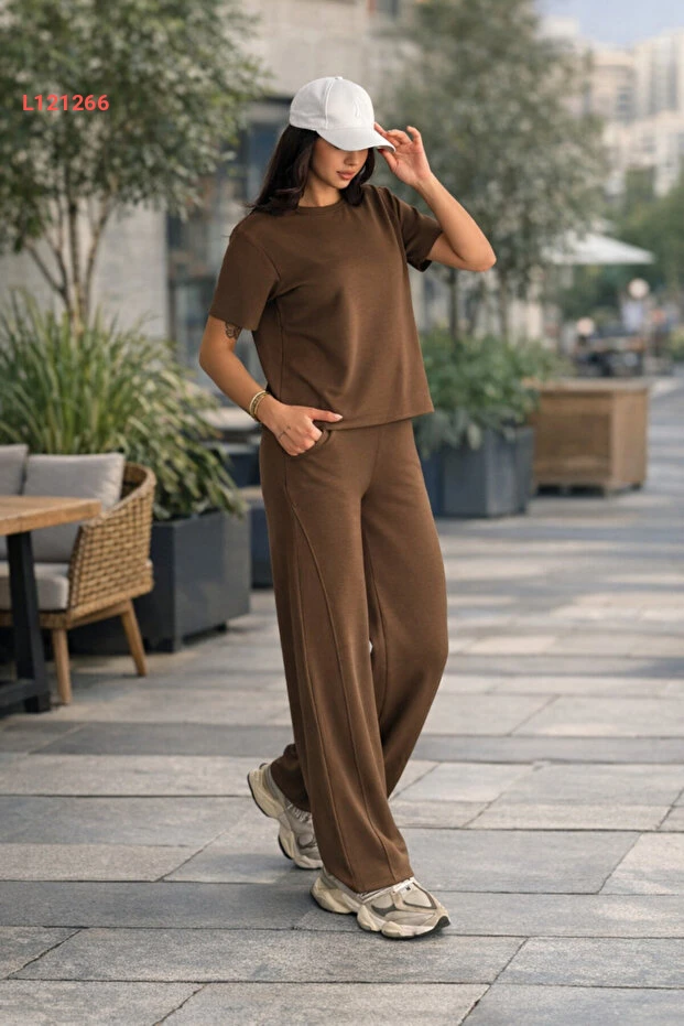 طقم كادين مودال بأكمام قصيرة - تي شيرت وسروال رياضي واسع