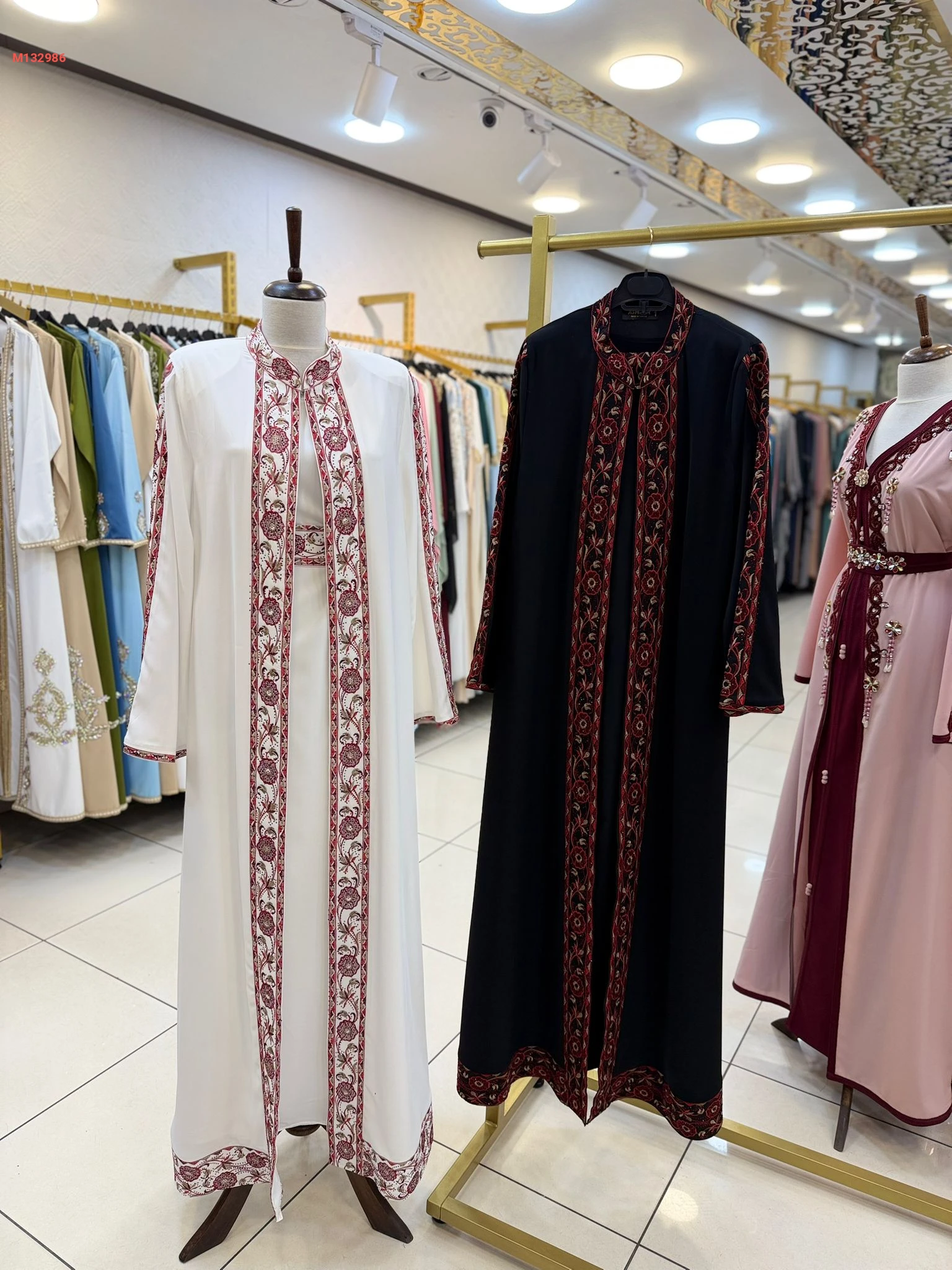 قفطان عباية تطريز يدوي مزينة بالستراس ، مع حزام