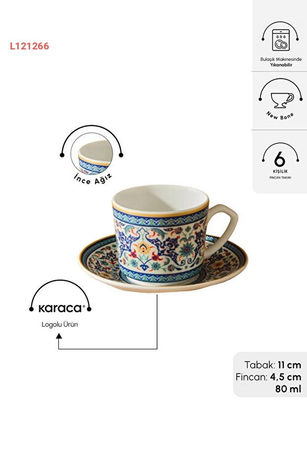 استمتع بلحظات قهوة مذهلة مع مجموعة فناجين القهوة الأنيقة Karaca Beylerbeyi، المكونة من 6 فناجين سعة 80 مل. تتميز بتصميمها الفاخر الذي يجمع بين الأناقة والوظيفية، مما يجعلها مثالية لضيافة متميزة أو للاستخدام اليومي. اجعل كل رشفة من قهوتك لحظة خاصة مع هذه القطع الراقية!