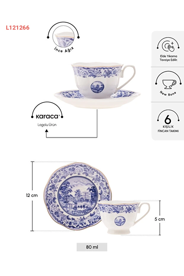 مجموعة فناجين قهوة كاراكا بلو أوديسي لـ6 أشخاص سعة 80 مل