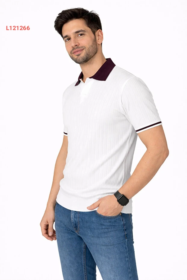 تي شيرت بولو قصير الأكمام للرجال بتصميم عصري من كارل بوتيك - أبيض مناسب للارتداء اليومي