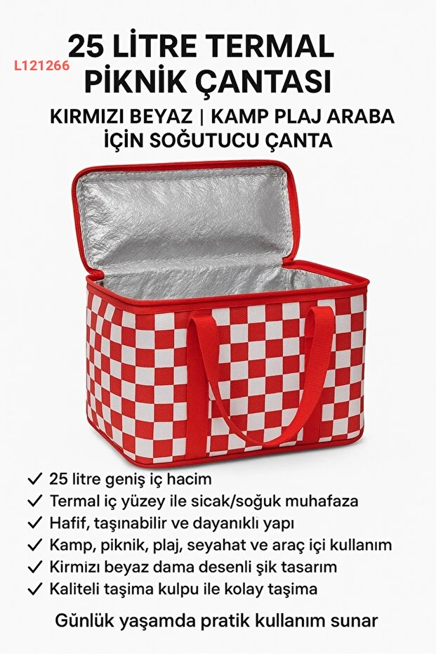 اكتشف حقيبة البيك-نيك الترموغرافية "Keyifli Sepet" بسعة 25 لتر، المصممة بلون أحمر وأبيض الأنيق! تمنحك هذه الحقيبة الفريدة الراحة والفعالية في تخزين الطعام والمشروبات، مع قدرة على الحفاظ على برودة المحتويات لفترة طويلة، مما يجعلها مثالية للنزهات، الشواطئ، ورحلات السيارة. اجعل مغامراتك أكثر متعة مع هذه الحقيبة العملية التي تجمع بين الأناقة والوظائف!