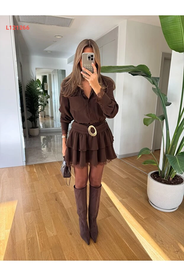 تألقي بأناقة لا تضاهى مع فستان "كهر" ذي ياقة قميص وتفاصيل الدانتيل الرائعة. يتميز بتصميمه الميني العصري وخصره المحدد بحزام أنيق، مما يمنحك إطلالة جذابة ومناسبة لكل المناسبات. اجعلي كل لحظة خاصة بك مع هذا الفستان الذي يجمع بين الراحة والأناقة.
