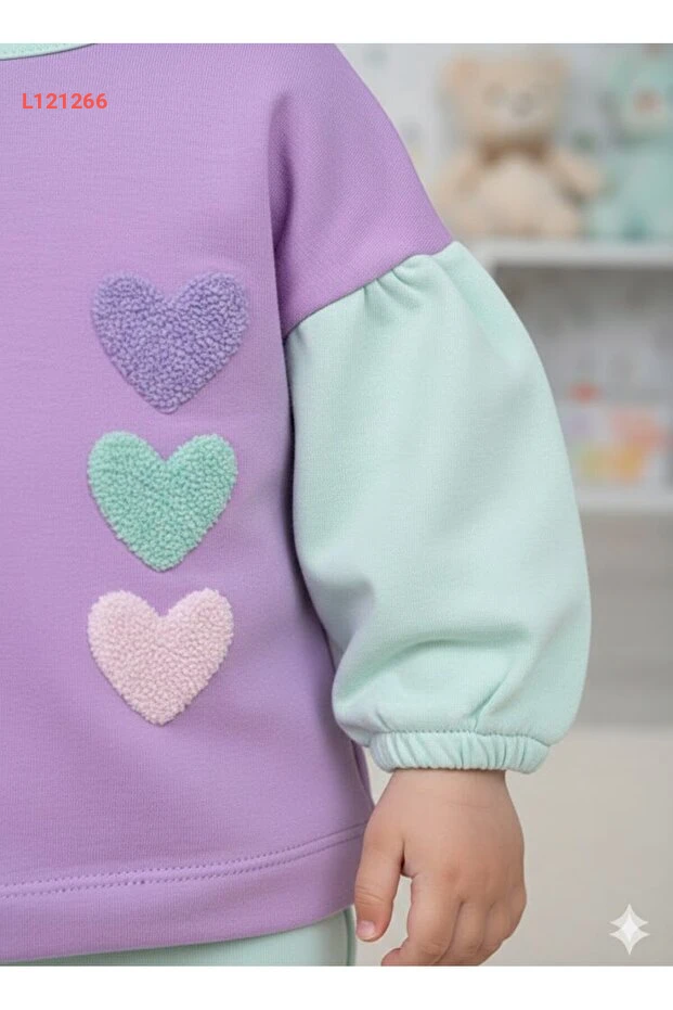 استمتعي بأناقة صغيرة مع طقم البنات المكون من قطعتين من قماش الباموك المزخرف بخيوط رائعة على شكل قلب. يتميز بملمس ناعم ومريح يضمن راحة طفلتك خلال كل لحظة من اللعب، مما يجعله الخيار المثالي لكل يوم. تصميم عصري وألوان زاهية تضفي لمسة من السعادة على خزانة ملابسها!