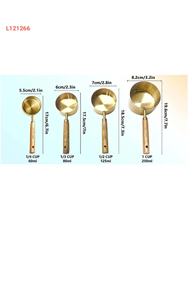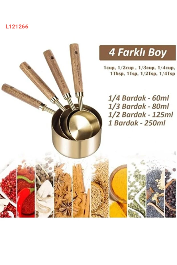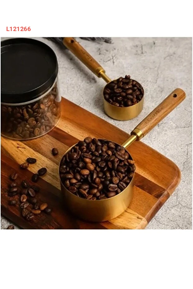طقم ملاعق قياس من الفولاذ المقاوم للصدأ مع مقHandles خشبية - 4 أحجام (60 مل، 80 مل، 125 مل، 250 مل)