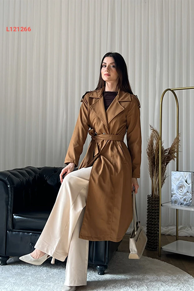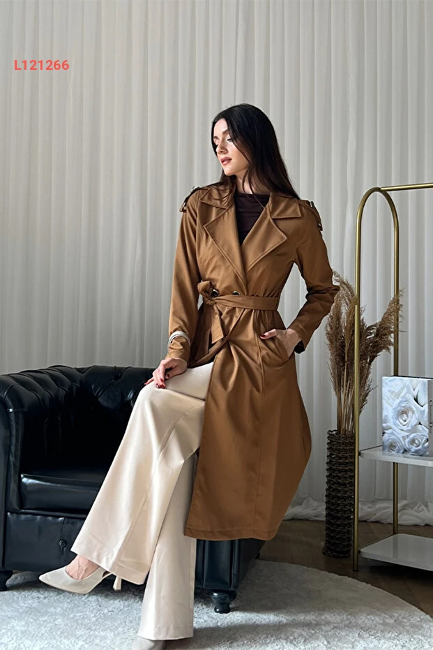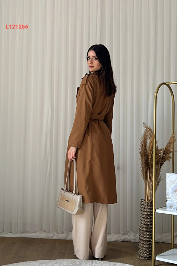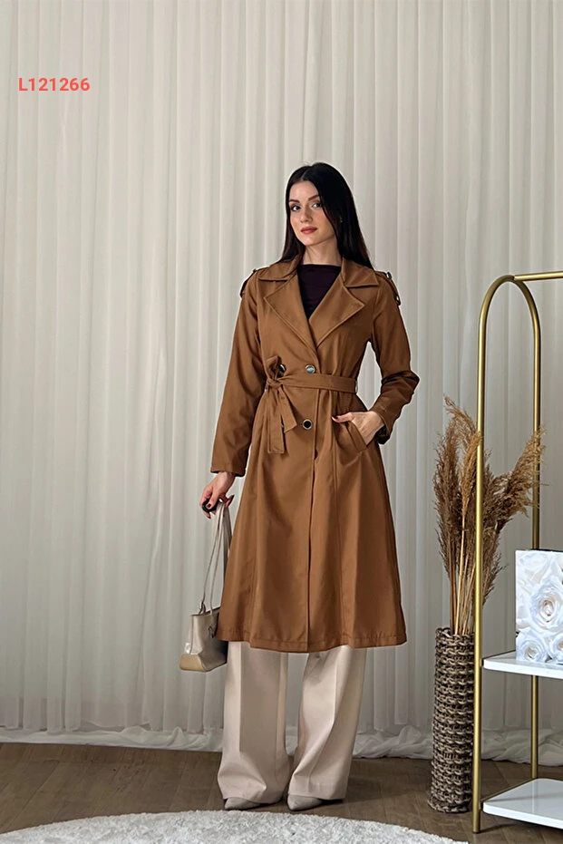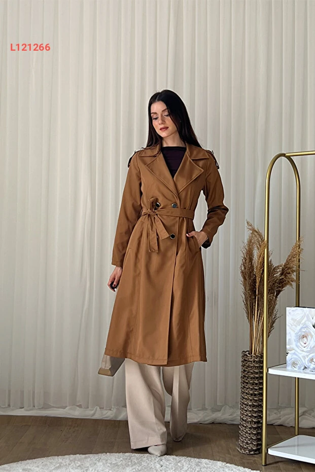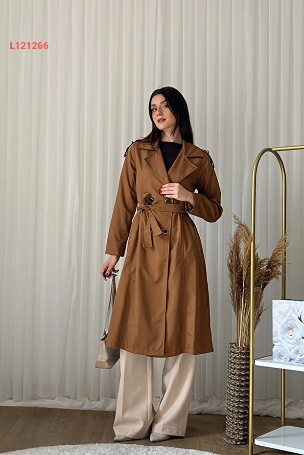 معطف ترينش نسائي كلكس بحزام - مزدوج الأزرار، طويل، أنيق - بني - L