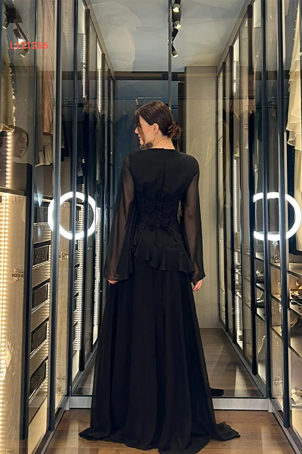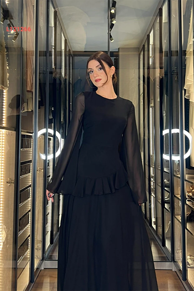استمتعي بأناقتك مع فستان Klex الشيفون الطويل الذي يتميز بتفاصيل الريش الرائعة والأكمام الشفافة الجذابة. صُمم ليكون الاختيار المثالي للمناسبات الرسمية، حيث يمنحك مظهراً أنيقاً وفريداً يجمع بين الأنوثة والرقي. ارتدي هذا الفستان لتظهري كالأميرة في كل حفل ودعوة!