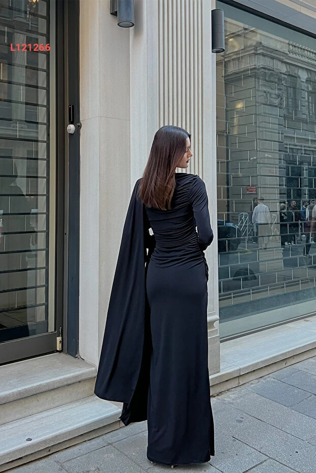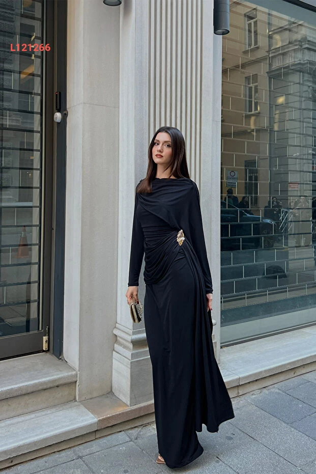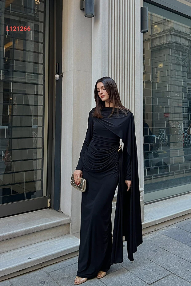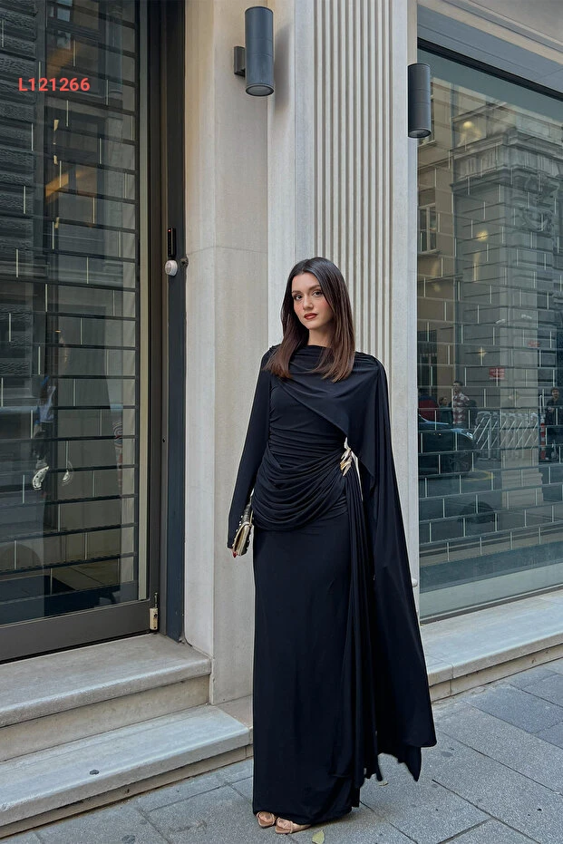 استمتع بمظهر أنيق وجذاب مع الفستان الطويل Klex بوشاح فريد من نوعه. يتميز بتفاصيل Drapeli الفريدة والأكمام الطويلة، مما يجعله الخيار المثالي للمناسبات الرسمية والسهرات. بفضل لونه الأسود الكلاسيكي، ستحصلين على إطلالة مبهرة ودائمة الجاذبية.