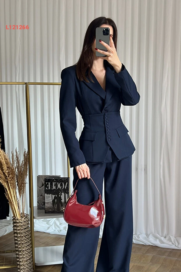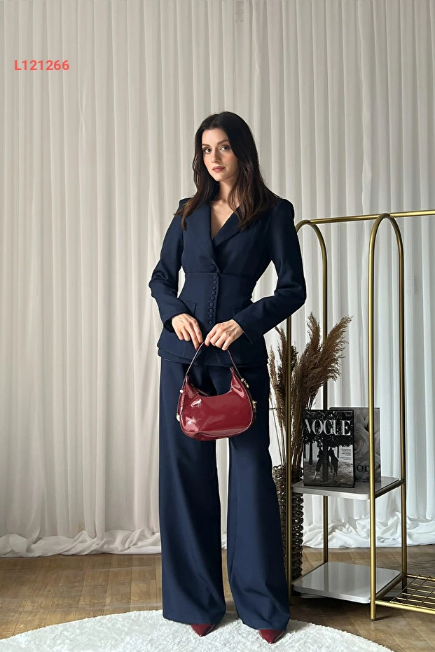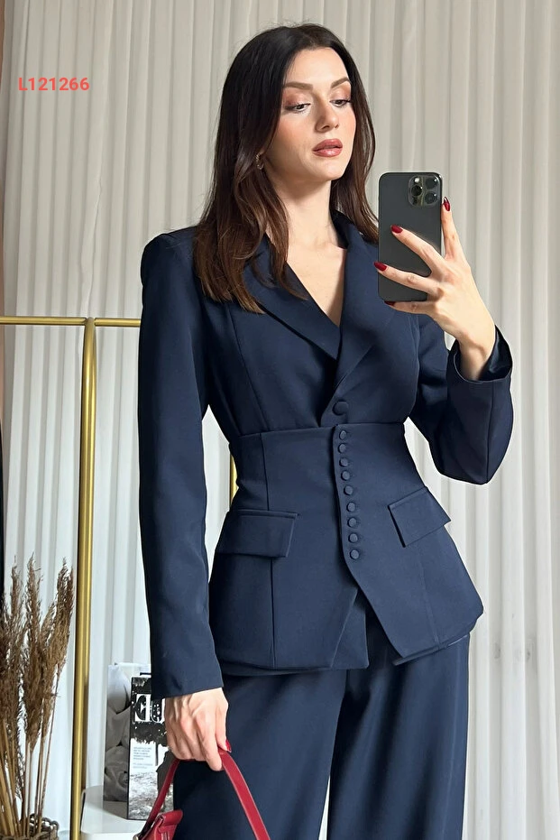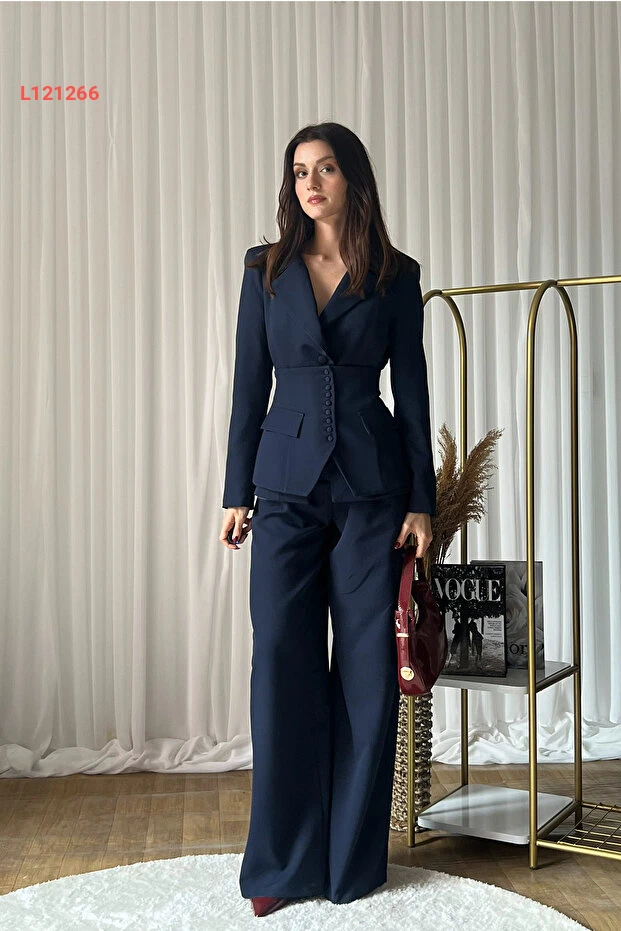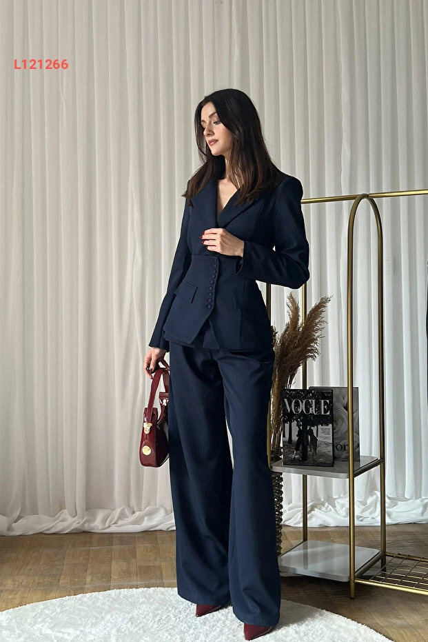 طقم بنطلون كوري بلازر ثلاثي من كليكس للنساء - عالي الخصر بلون أزرق داكن